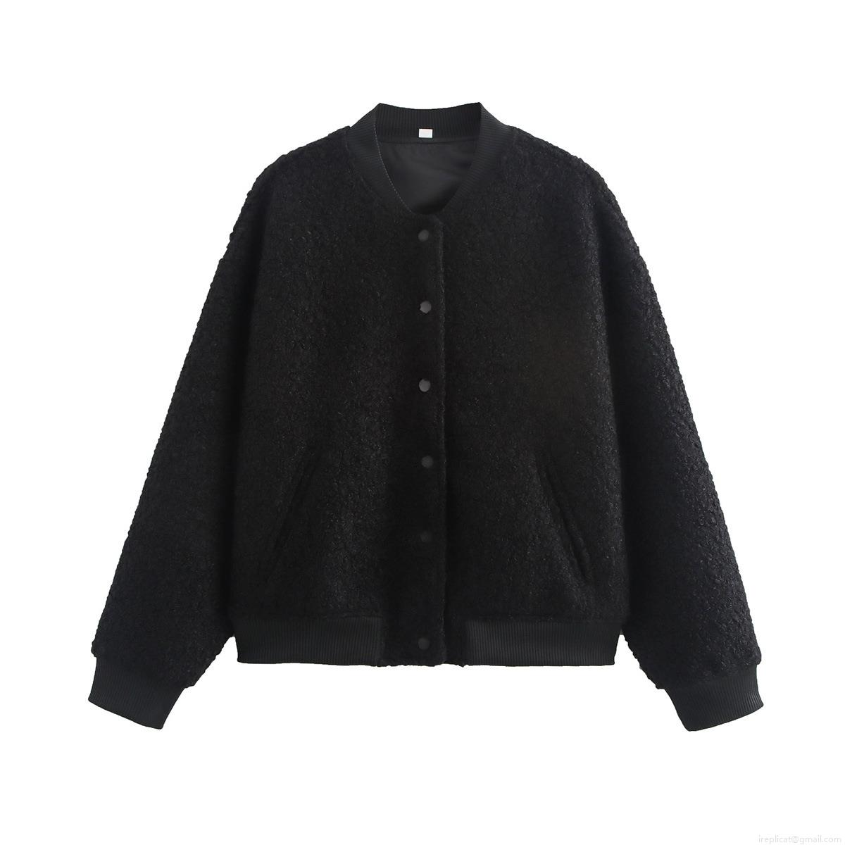 • Women's Casual Lamb Fleece Baseball Jacket Warm Long Sleeve Loose Bomber Coat Fashion Streetwear With Snap Buttons Ribbed Trim For Autumn Winter
