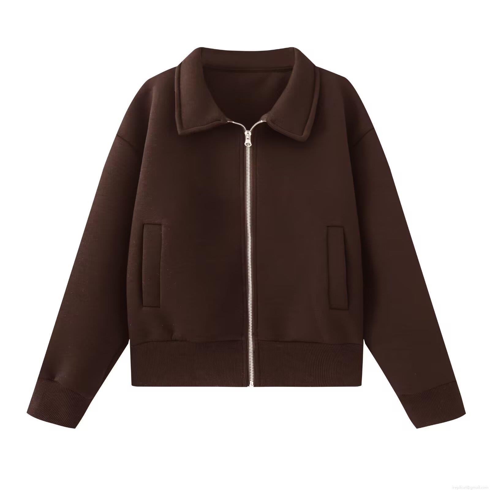 • Women's Casual Lapel Zipper Pilot Jacket Solid Color Knit Sweatshirt Loose Long Sleeve Outerwear With Ribbed Cuffs For Women Daily Wear