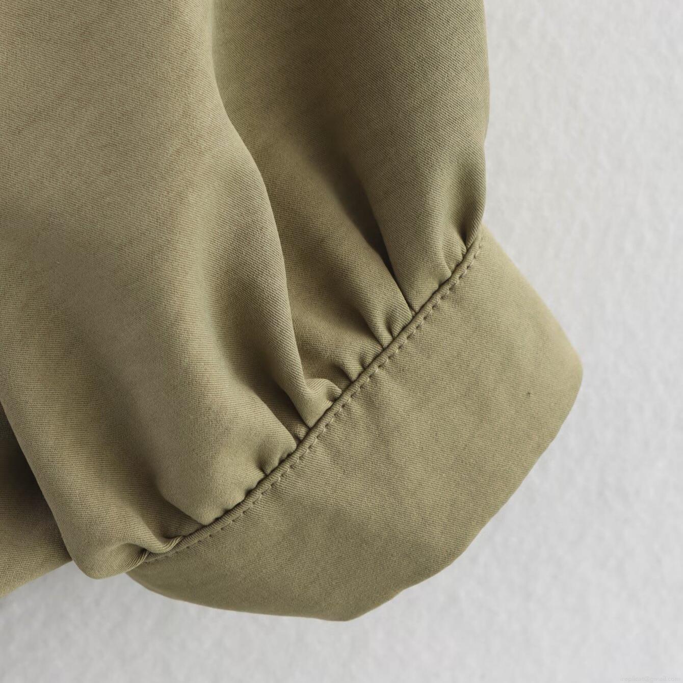 • Women's Casual Lightweight Bomber Jacket 100% Polyester Solid Color Loose Ruched Lantern Sleeve Zip Up Stand Collar Outerwear Coat For Daily Wear Autumn Spring