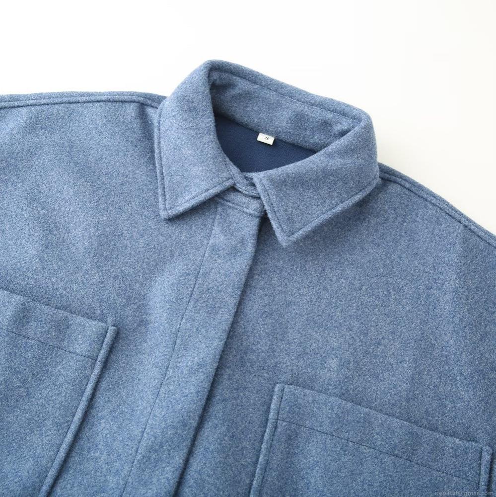 • Women's Casual Loose Soft Tweed Shacket Jacket Single Breasted Lapel Collar Mid Length Woolen Shirt Outerwear With Large Pockets Autumn Winter Top