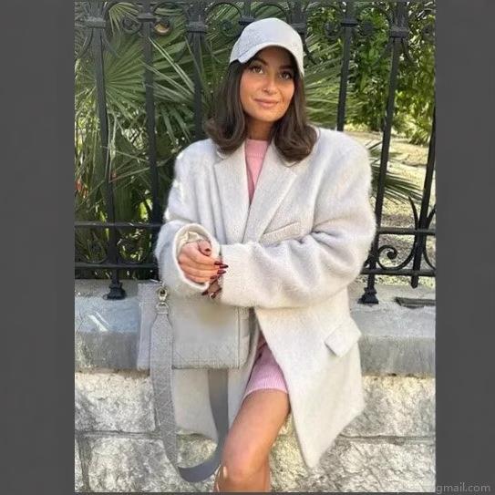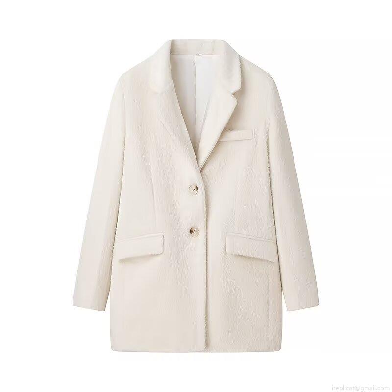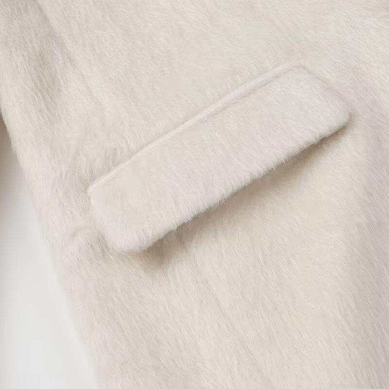• Women's Casual Loose Woolen Coat Autumn Winter Suit Collar Mid-length Overcoat Plush Fleece Jacket Polyester Solid Color Single Breasted Outwear For Women