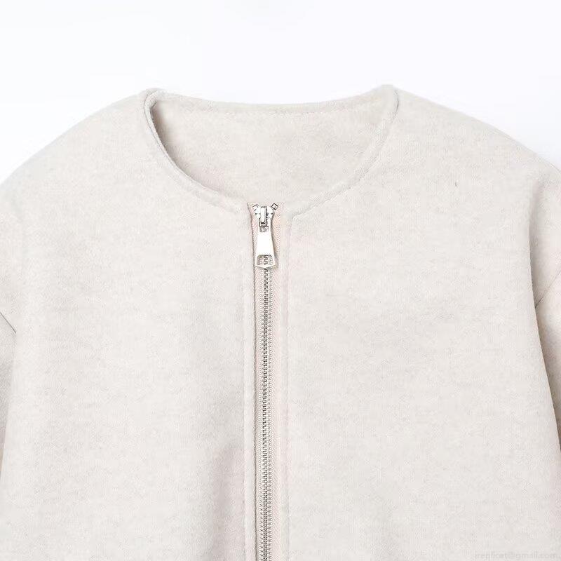 • Women's Casual Loose Zipper Jacket 100% Polyester Round Neck Solid Color Short Coat With Pockets For Autumn Daily Outdoor Ladies Fashion Outwear