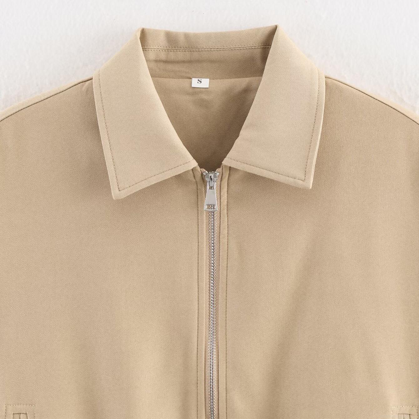 • Women's Casual Loose Zipper Jacket 100% Polyester Woven Solid Color Lapel Outerwear With Pockets Elastic Hem Short Windbreaker
