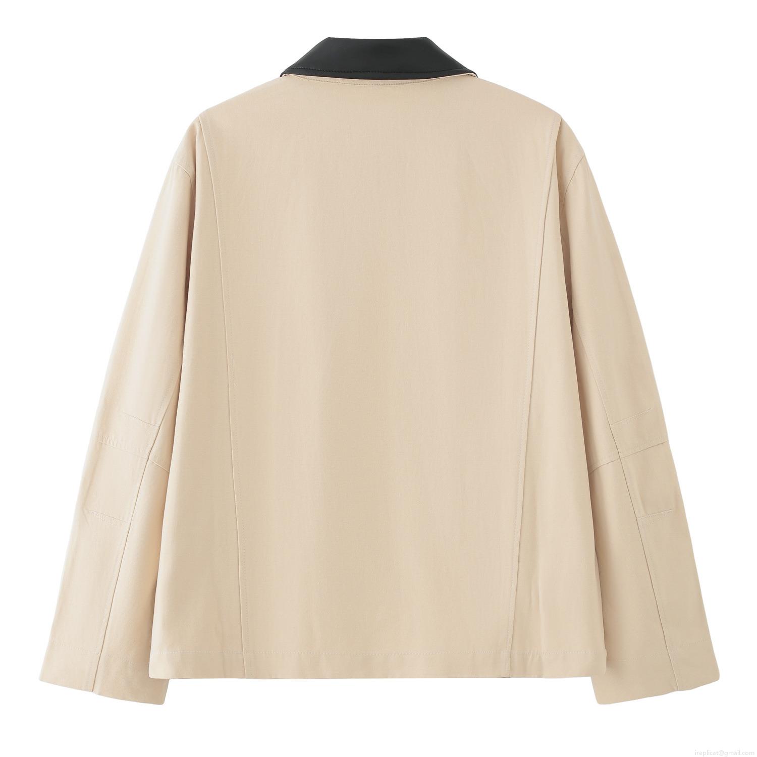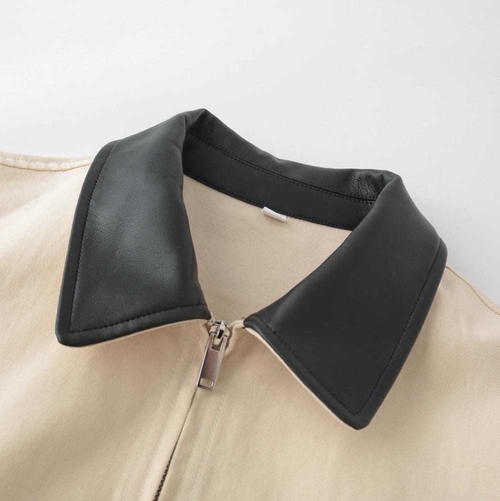 Women's Casual Loose Zip-Up Jacket Contrast PU Leather Collar Patchwork Long Sleeve Woven Coat Autumn Outerwear Streetwear Utility Jacket