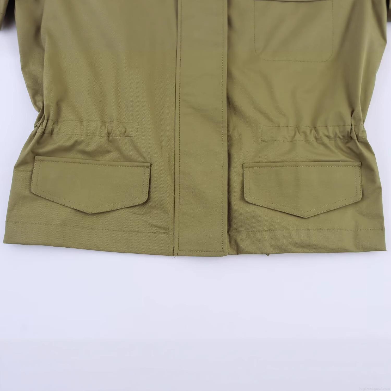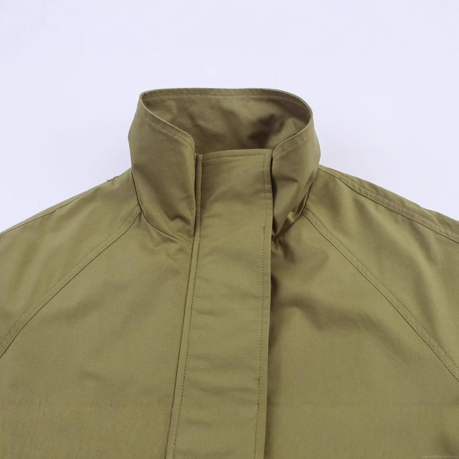 • Women's Casual Olive Green Utility Parka Jacket Windproof Polyester Stand Collar Drawstring Waist Large Pockets Outerwear Coat For Spring Autumn