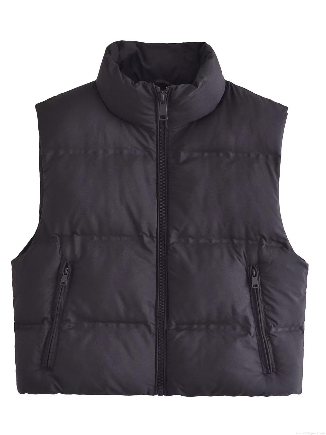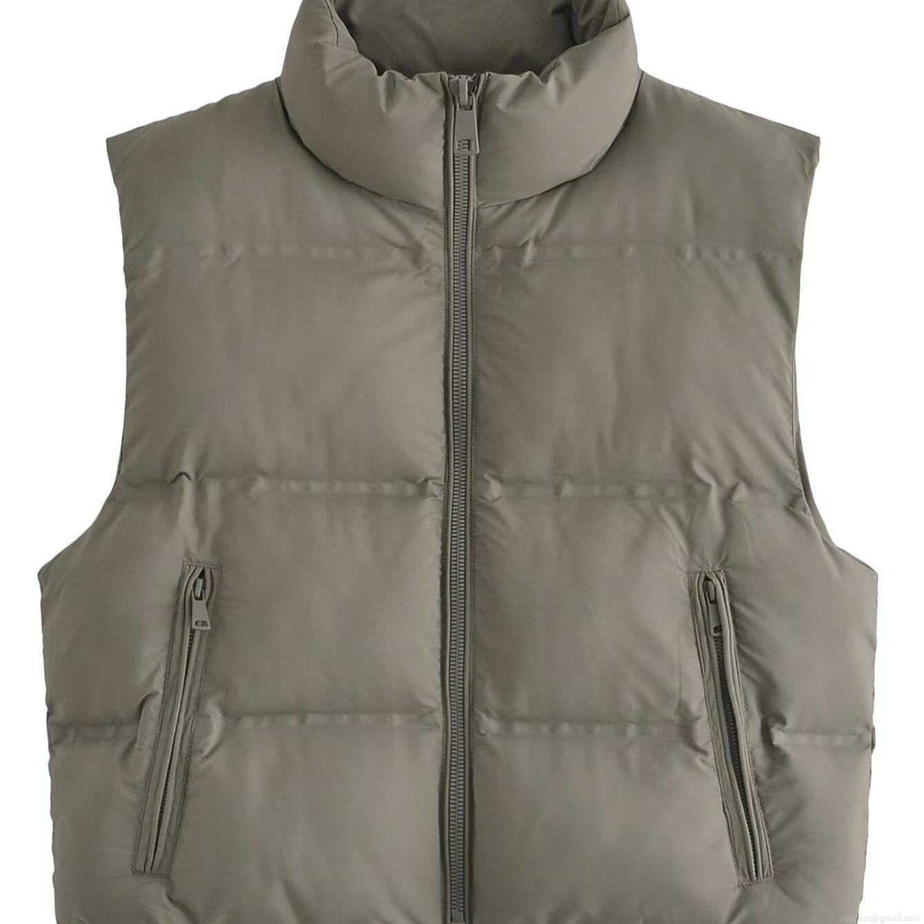 • Women's Casual Padded Vest Stand Collar Quilted Sleeveless Jacket With Zipper Pockets Winter Warm Polyester Synthetic Down Waistcoat For Ladies
