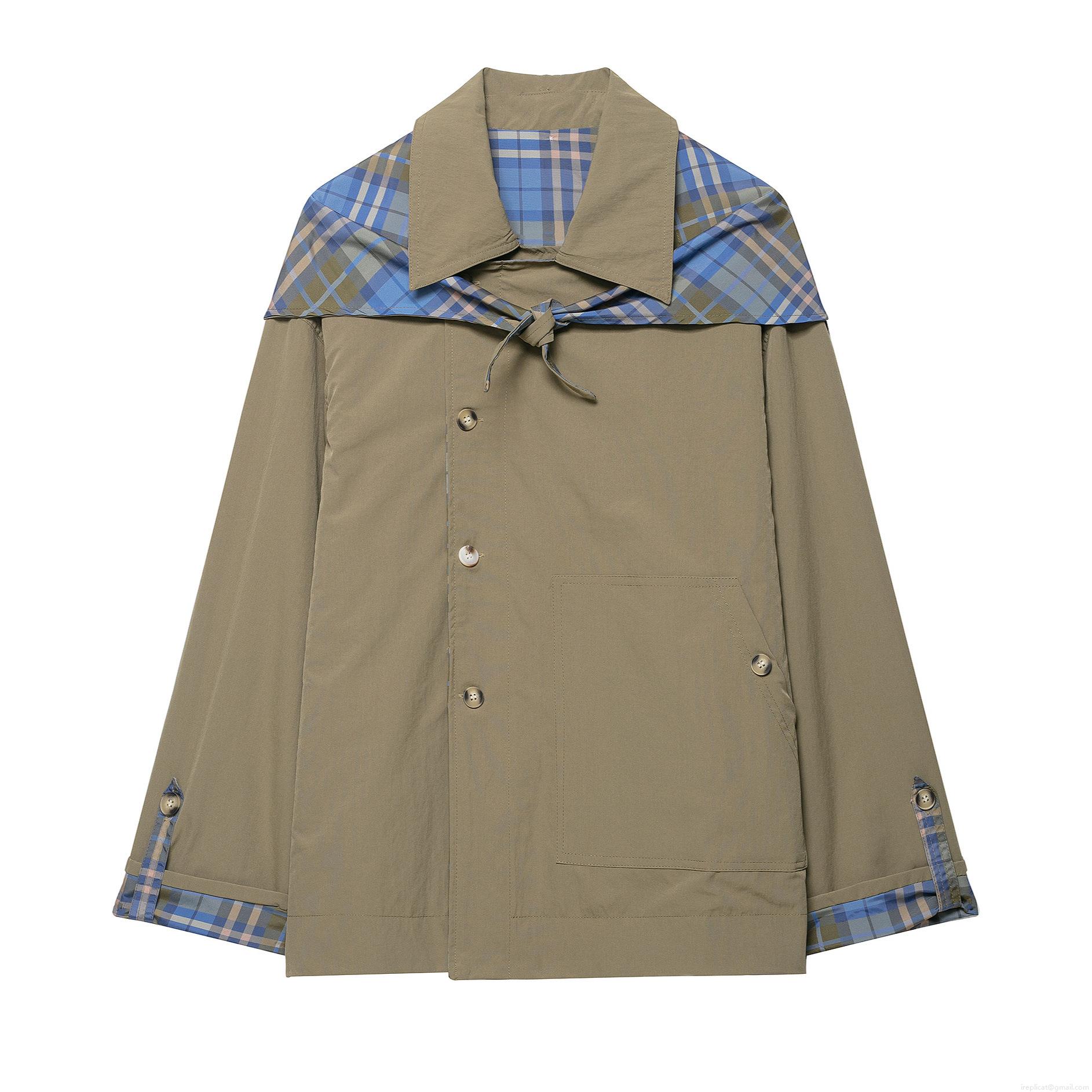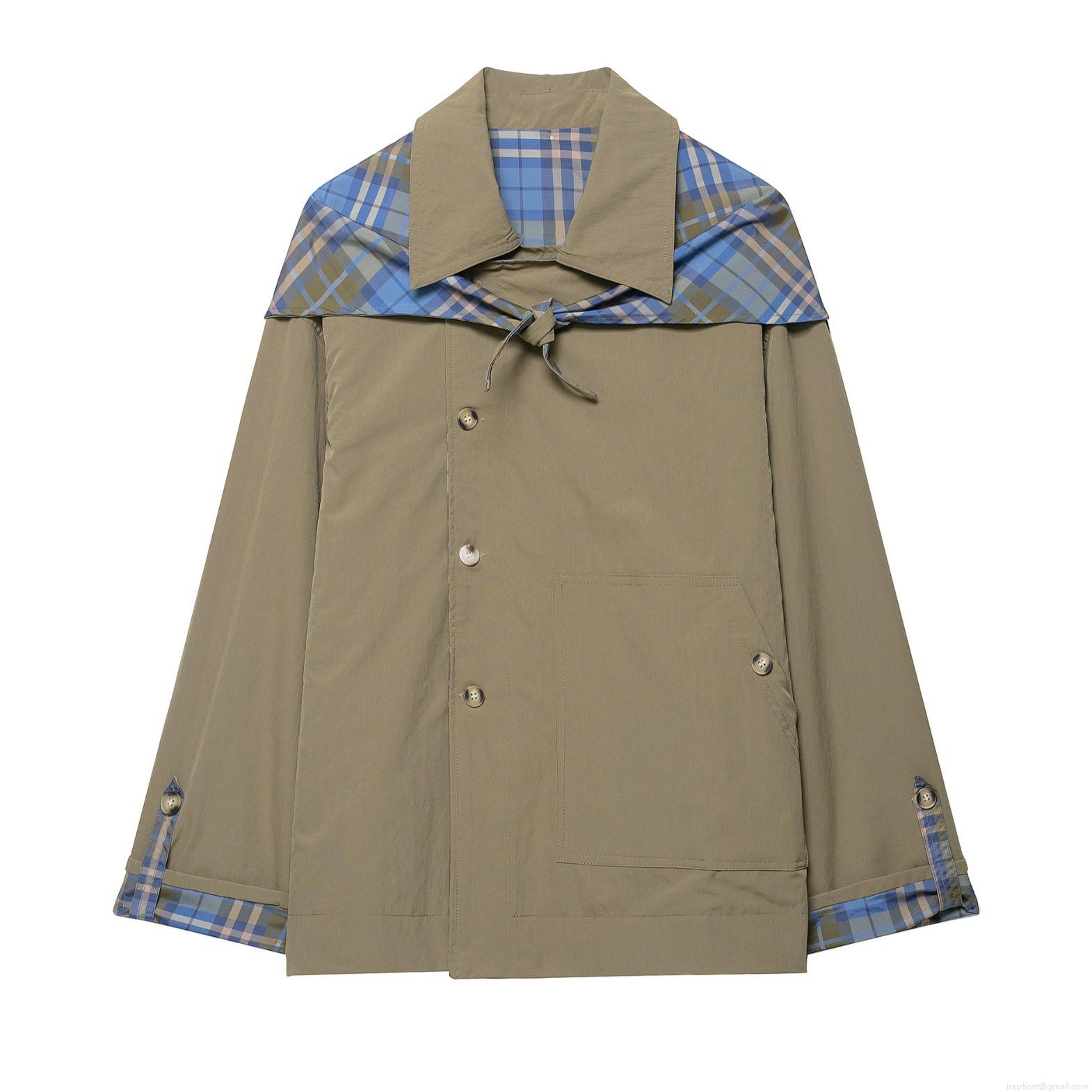 Splice, Checkered Pattern, Plaid Patchwork, Lace, Single-breasted, Big Pocket