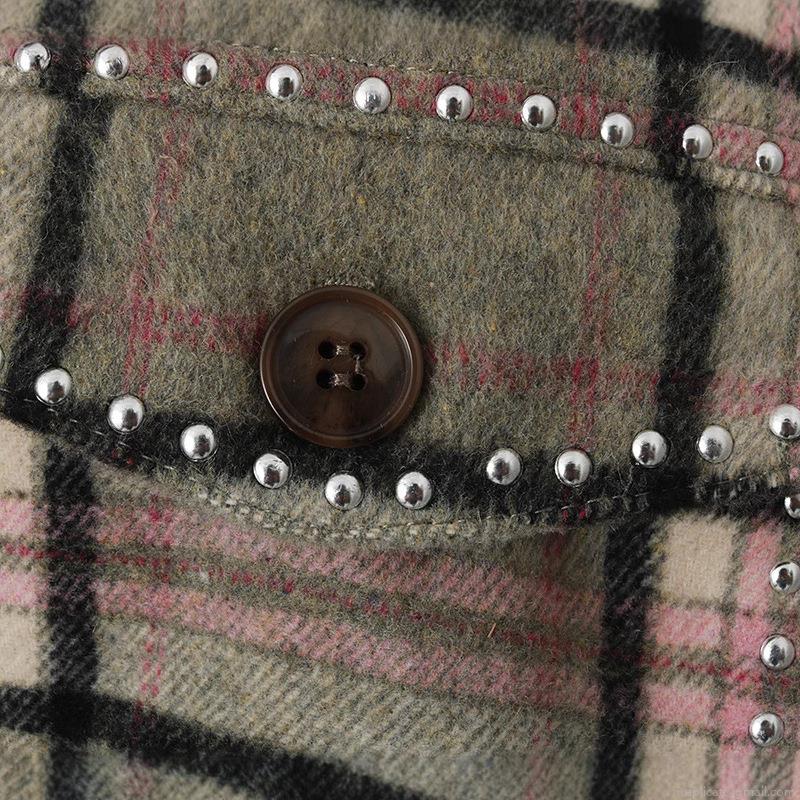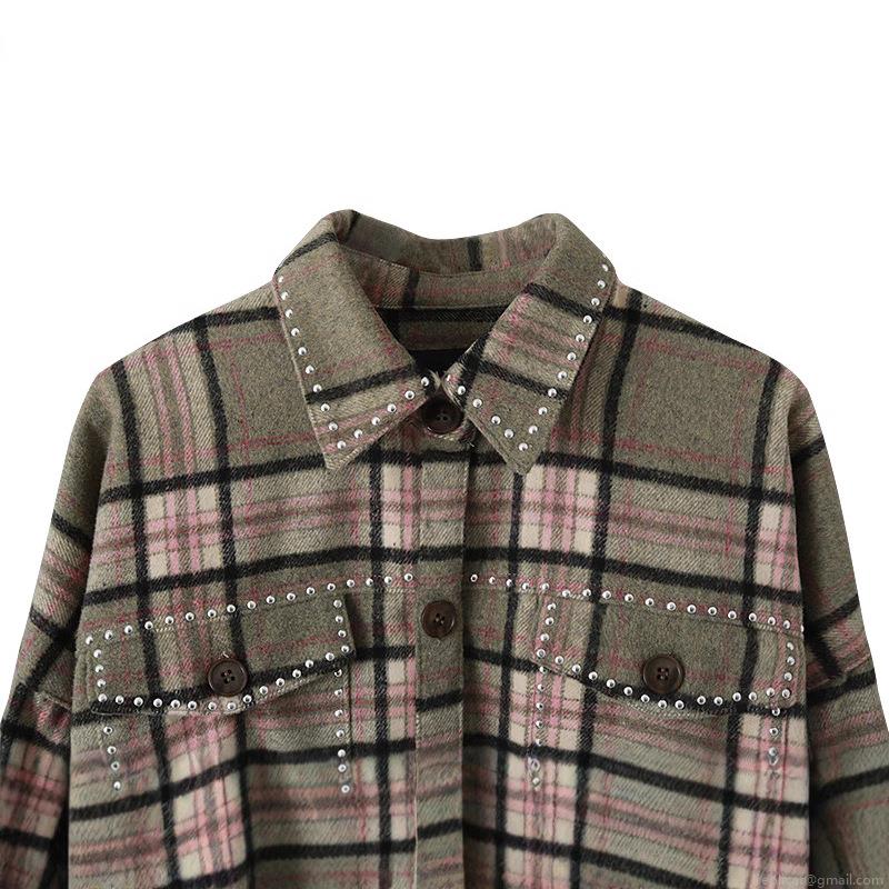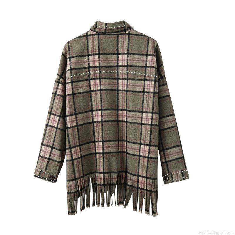 • Women's Casual Plaid Shirt Jacket With Tassel Hem Silver Studded Detail Long Sleeve Button Down Flannel Shacket Coat For Autumn Streetwear