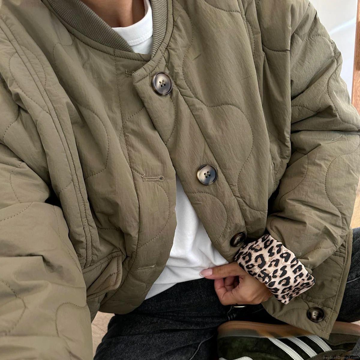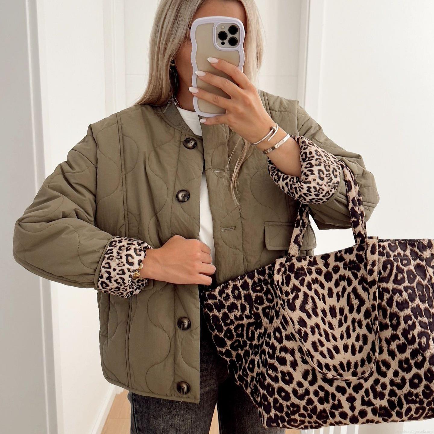 • Women's Casual Quilted Jacket Vintage Loose Fit Single Breasted Coat With Leopard Print Lining 100% Polyester Padded Lightweight Outerwear For Women