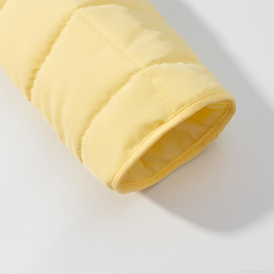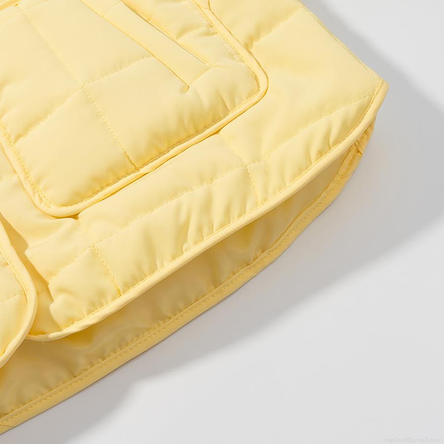 • Women's Casual Quilted Padded Jacket Light Yellow Round Neck Long Sleeve Single Breasted Warm Coat With Pockets For Autumn Winter Lightweight Outerwear