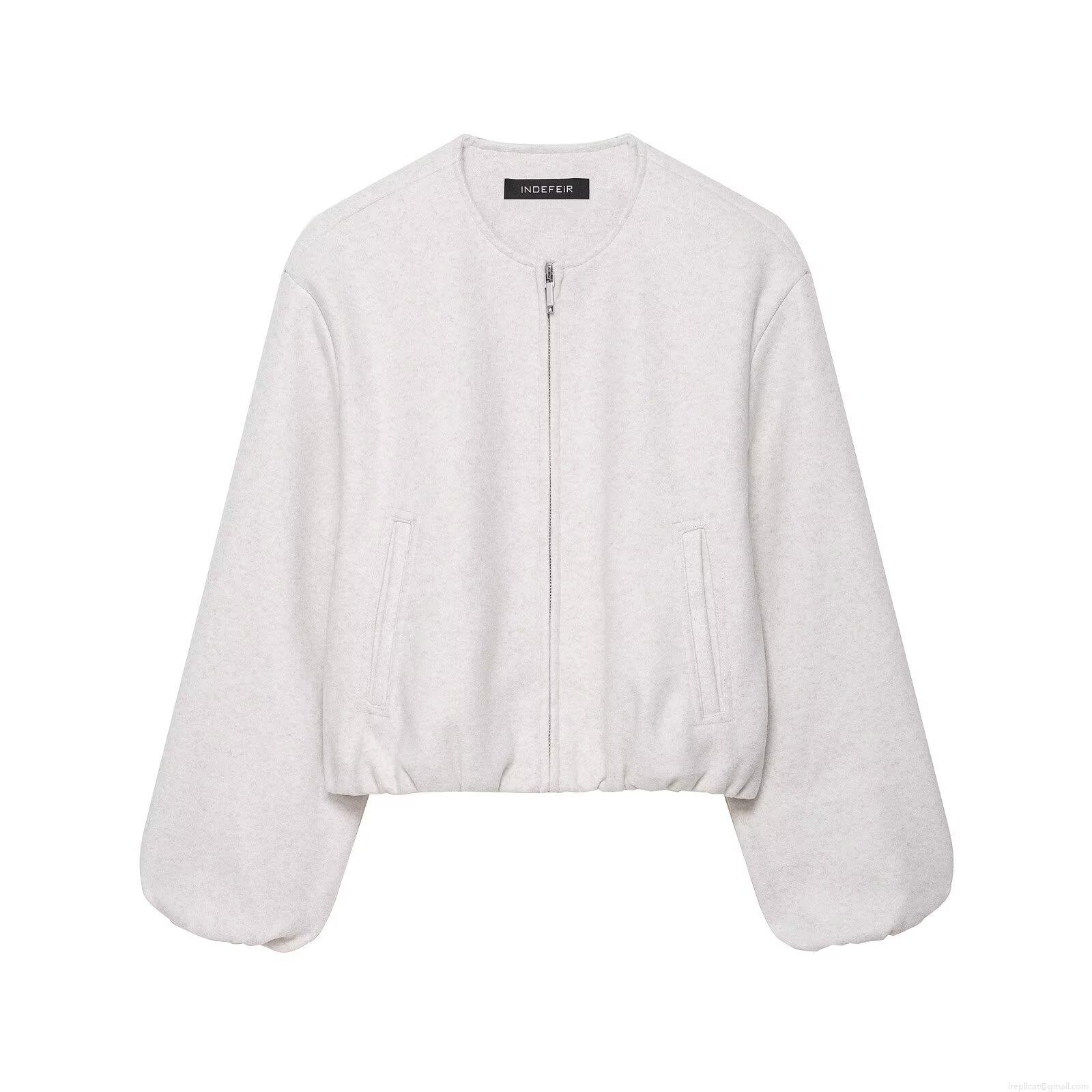 • Women's Casual Round Neck Zipper Jacket Solid Color Long Sleeve Coat With Pockets Minimalist European Style Autumn Outerwear For Women
