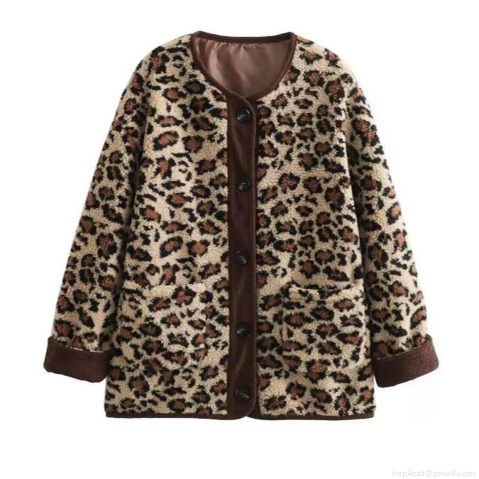 Solid Color, Splice, Leopard Print, Fleece, Single-breasted