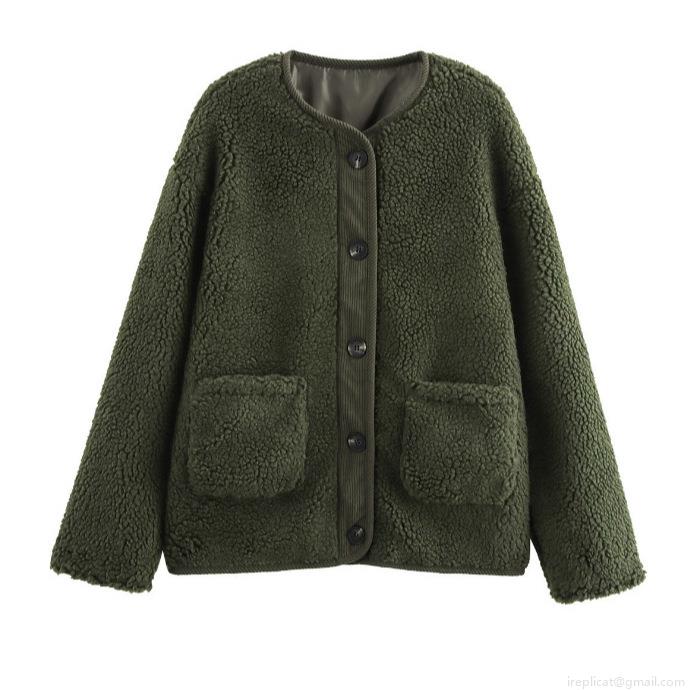 • Women's Casual Sherpa Fleece Jacket Leopard Print Solid Green Long Sleeve Warm Faux Lamb Wool Button Down Outerwear Coat For Women Autumn Winter Fashion