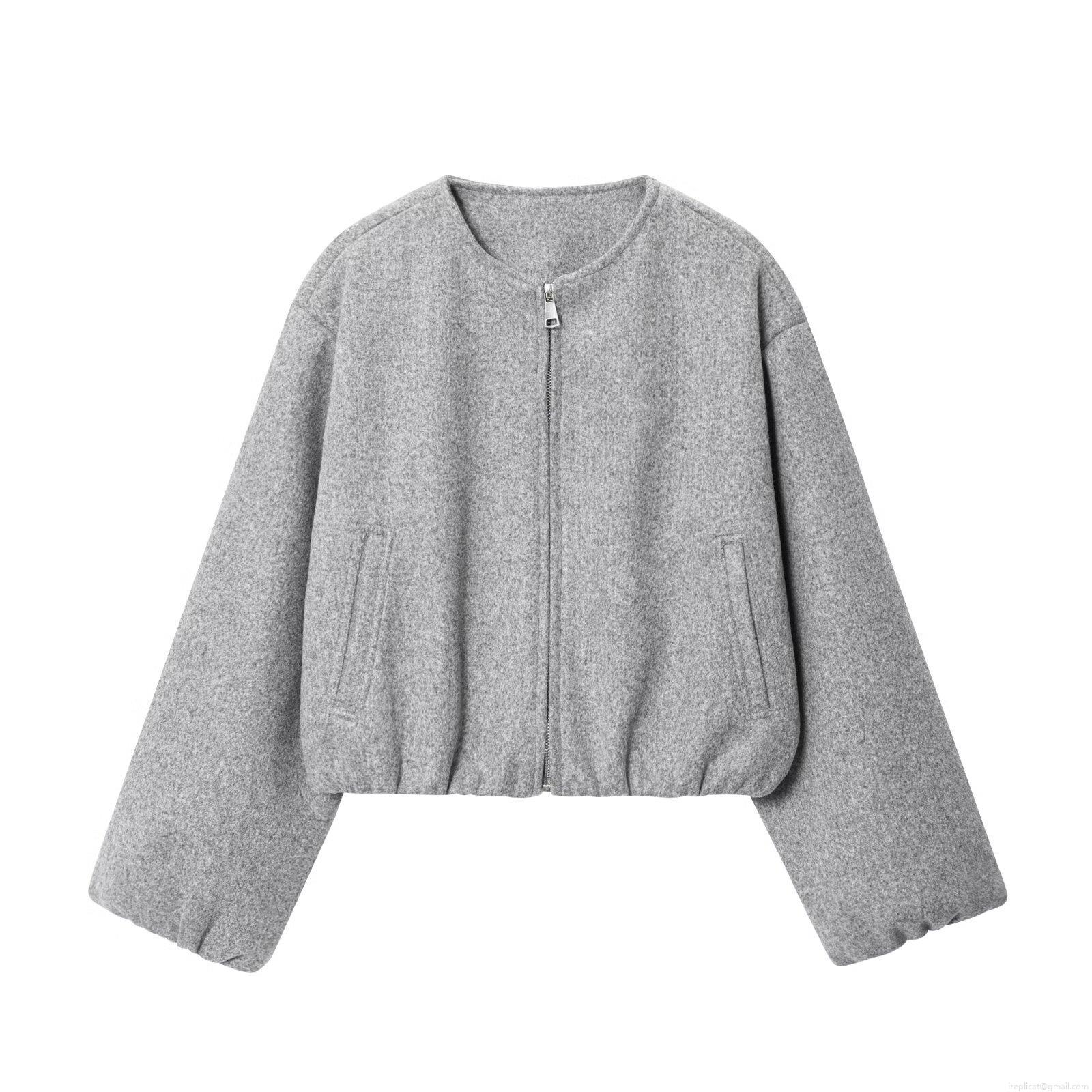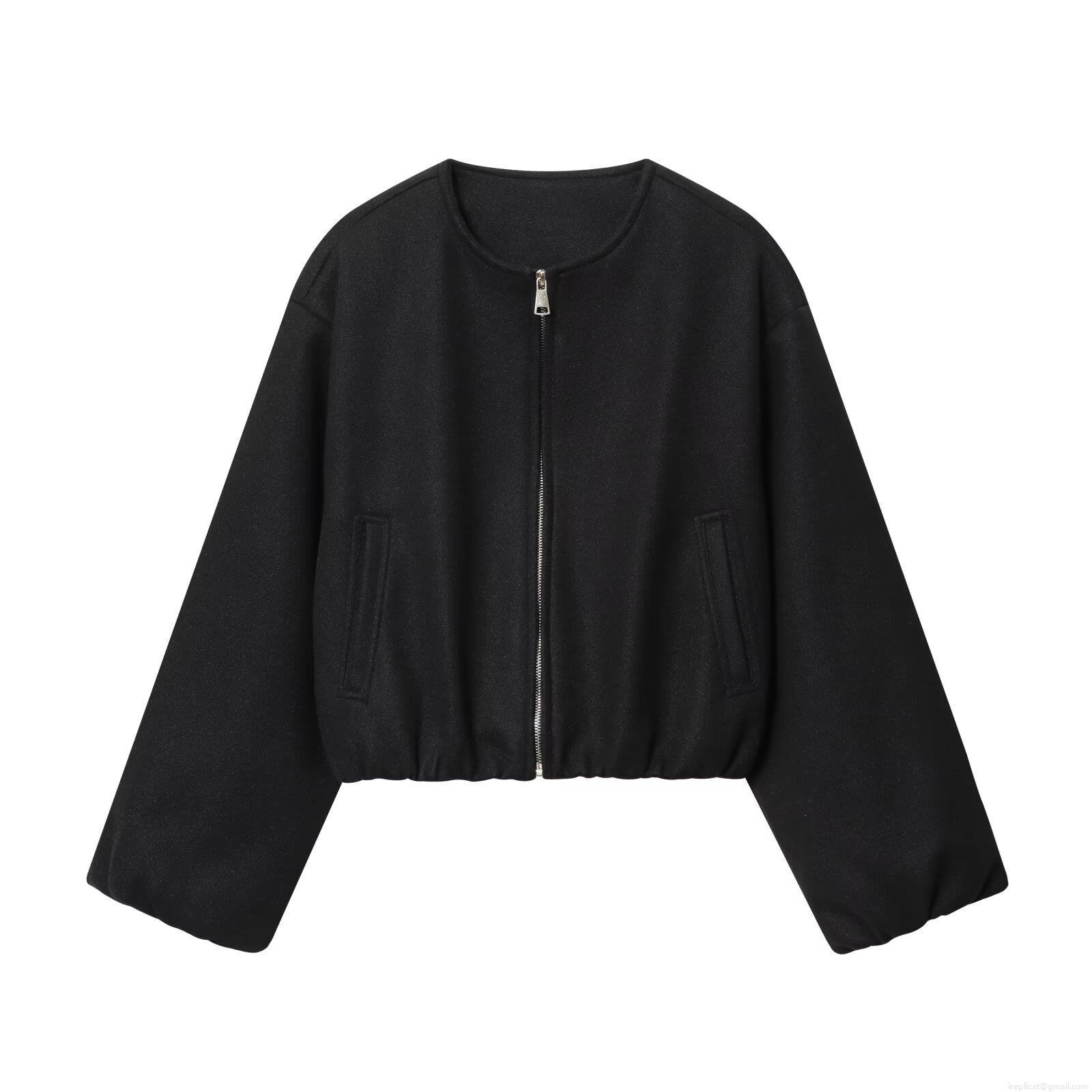 • Women's Casual Short Bomber Jacket Soft Polyester Blend Round Neck Zipper Coat Fashion Solid Color Long Sleeve Outerwear For Fall Winter Loose Fit Streetwear