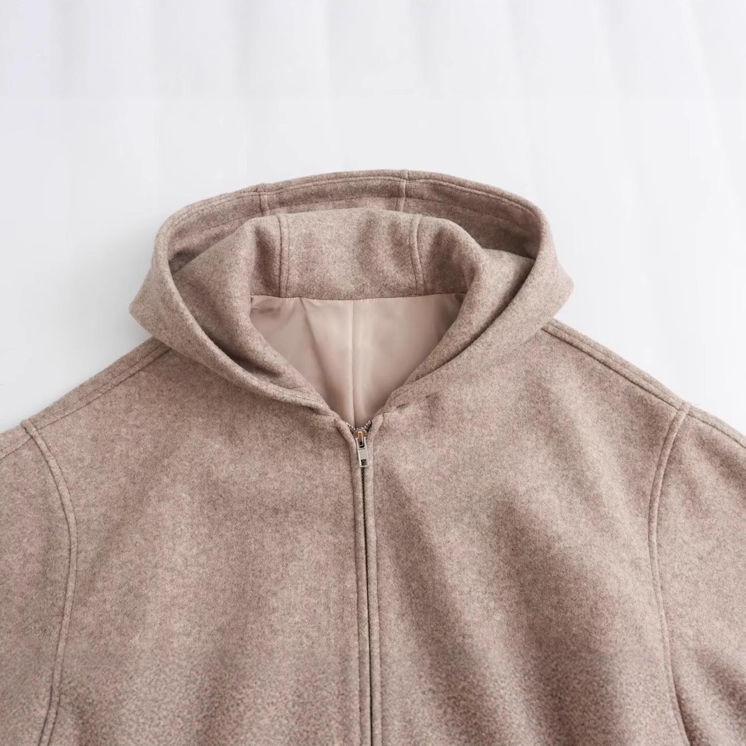 • Women's Casual Short Hooded Bomber Jacket Loose Warm Woolen Texture Full Zip Outerwear Autumn Winter Fashion Streetwear Ladies Coat