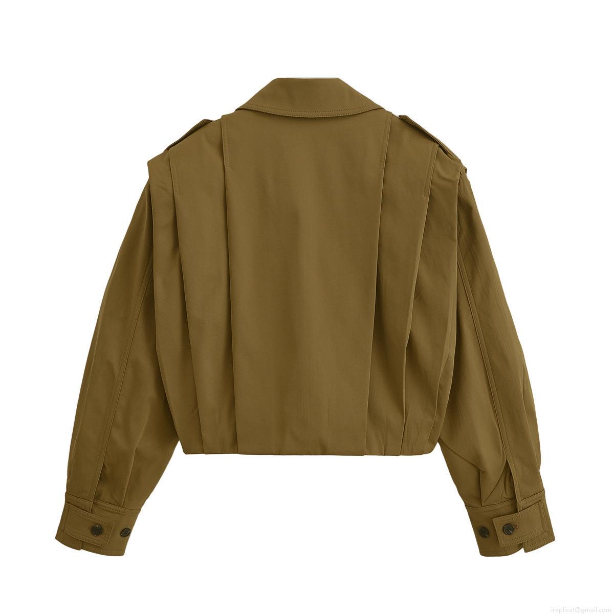 • Women's Casual Short Jacket 100% Polyester Windbreaker Outerwear Lapel Single Breasted Long Sleeve Coat With Pleated Back Design And Pockets Loose Fit Fashion Outerwear For Ladies