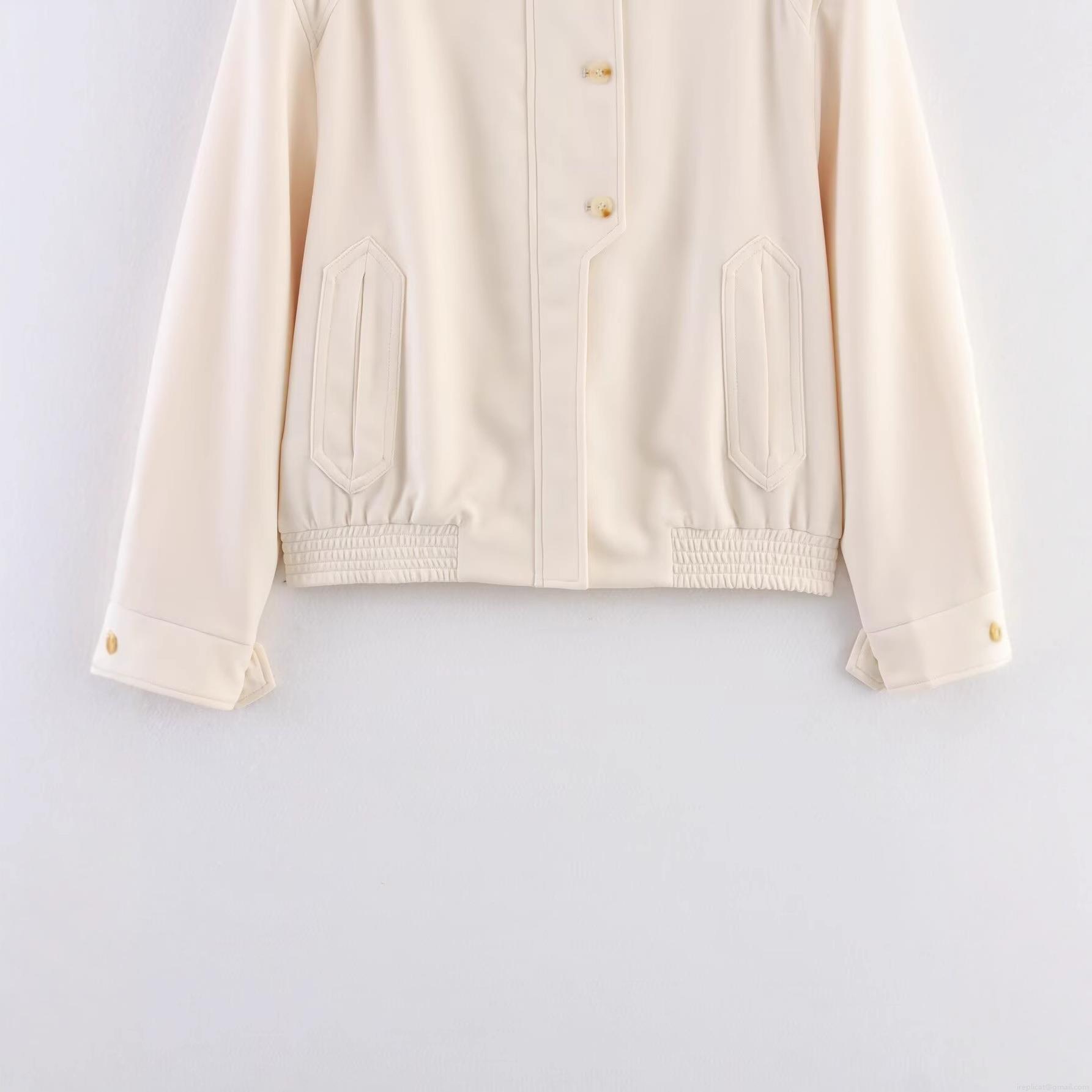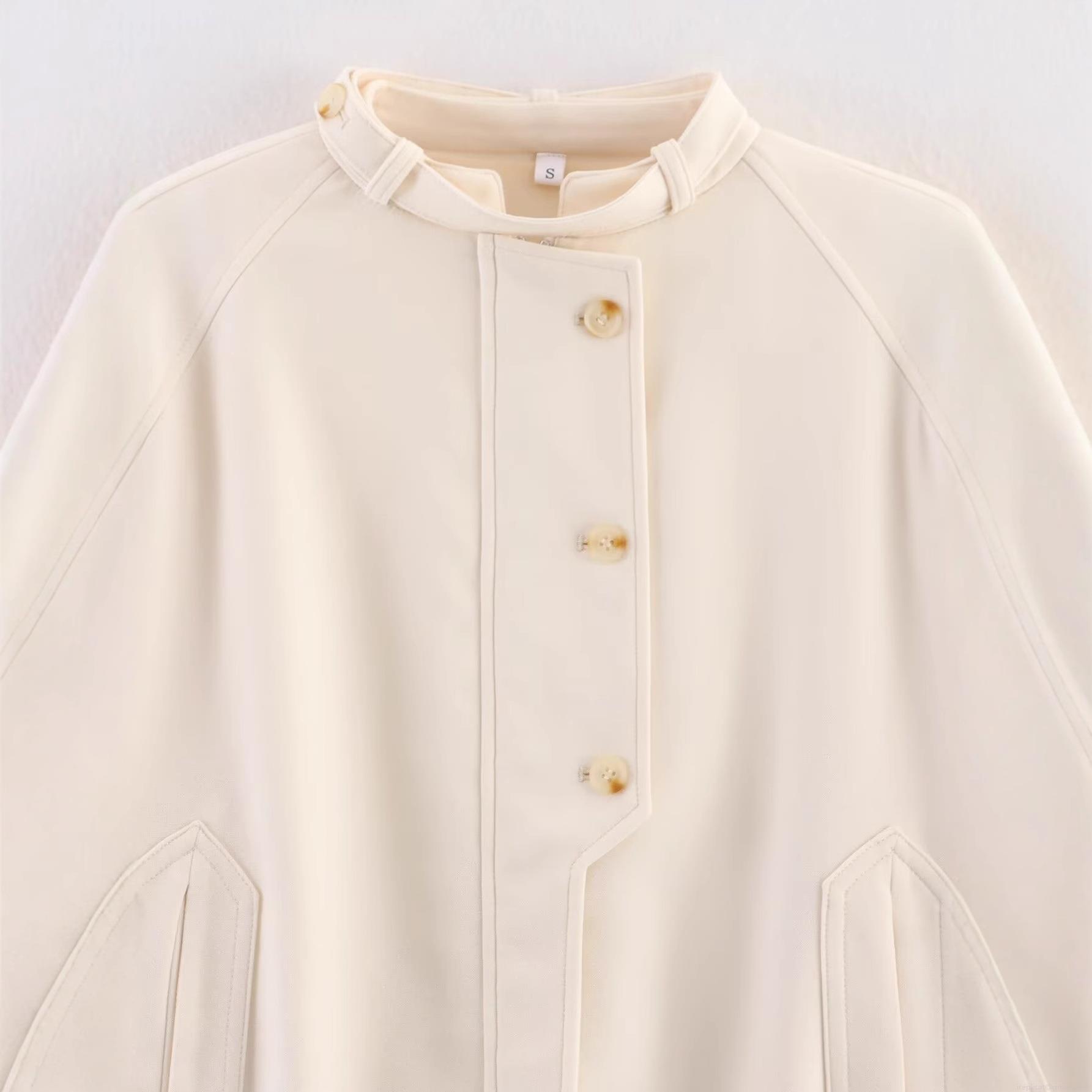 • Women's Casual Short Jacket 100% Polyester Woven Stand Collar Button Outerwear for Daily Commuting Minimalist Elegant Coat