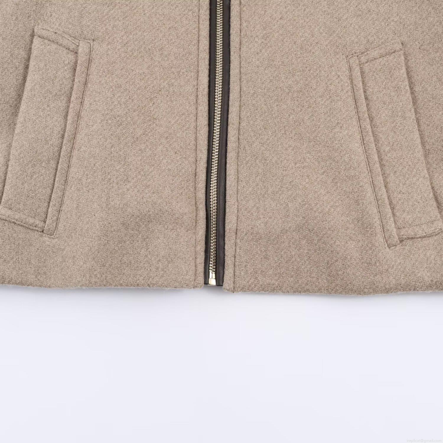 • Women's Casual Short Jacket With Faux Leather Trim Polyester Woolen Texture Round Neck Zip Up Coat Streetwear Outerwear For Spring Autumn