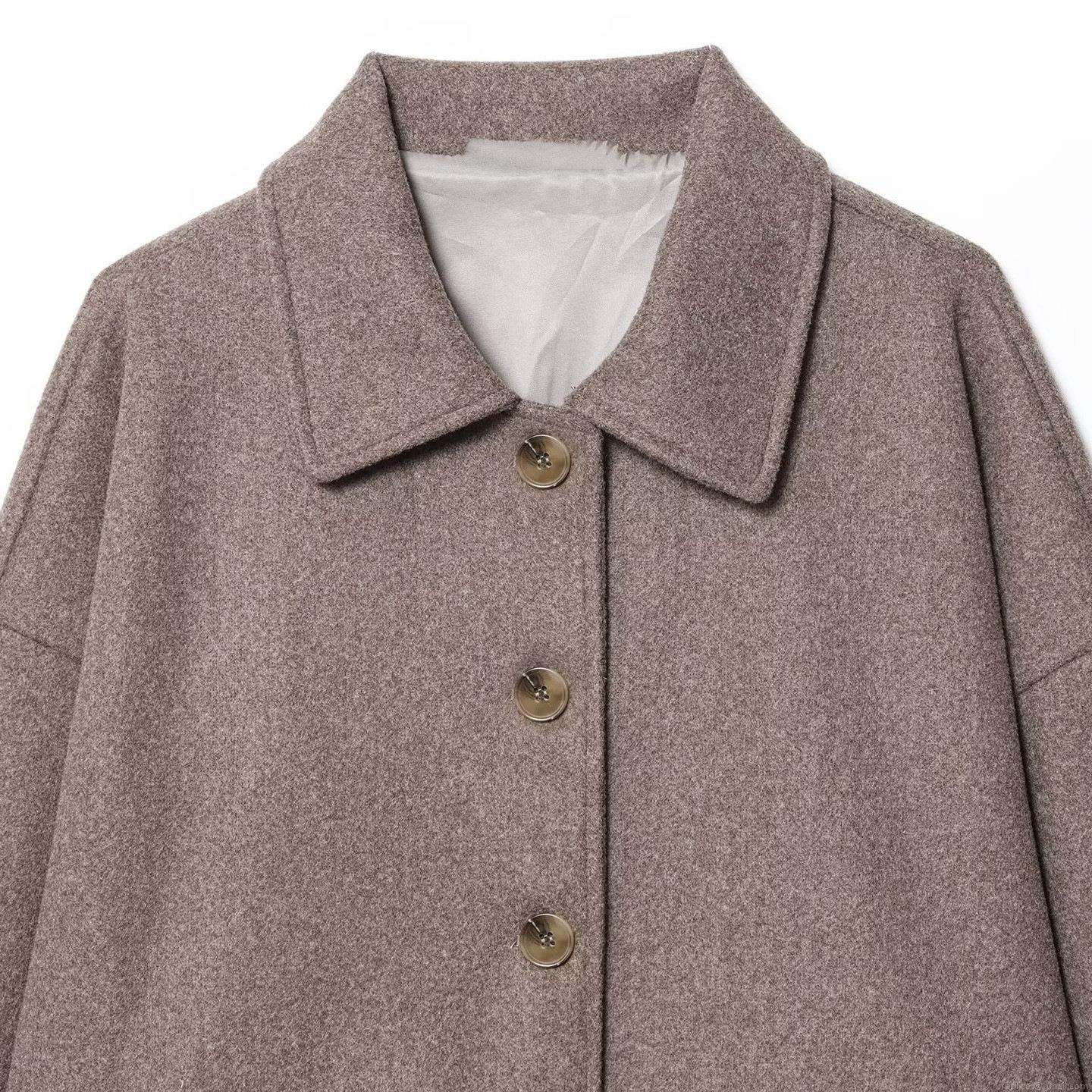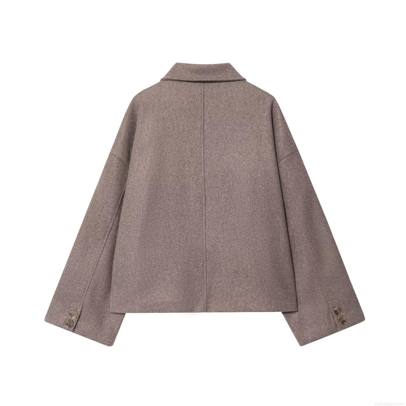 • Women's Casual Short Woolen Look Jacket Lapel Single Breasted Pocket Outerwear Polyester Spandex Blend Long Sleeve Coat for Autumn Winter