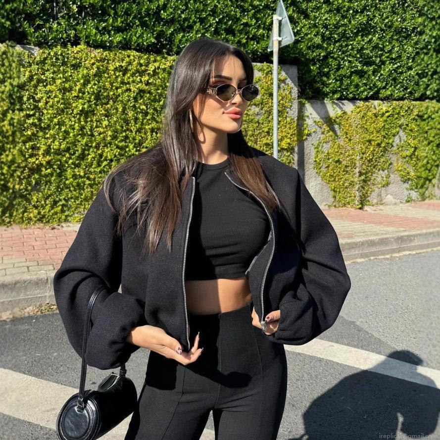 • Women's Casual Soft Bomber Jacket Zip Up Round Neck Lantern Sleeve Loose Fit Solid Color Pilot Outerwear Streetwear Jacket for Women