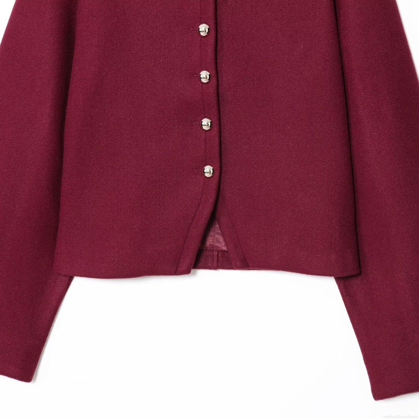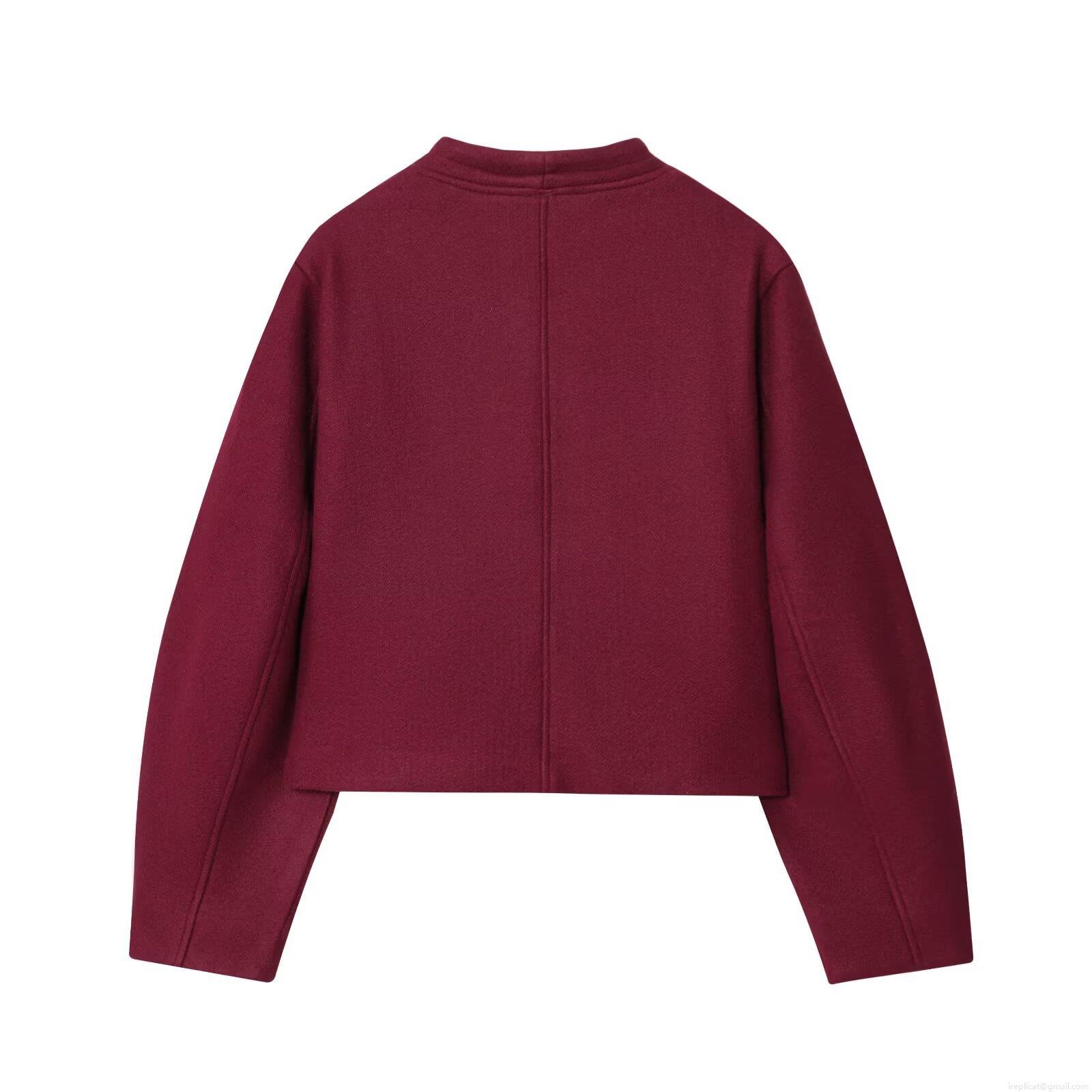 • Women's Casual Solid Color Long Sleeve Round Neck Jacket Fashion Short Woolen Blend Outerwear With Metallic Buttons For Daily Office Fall Autumn Wear