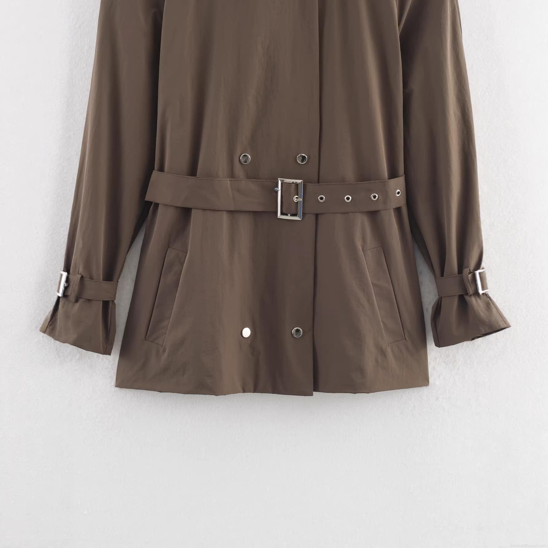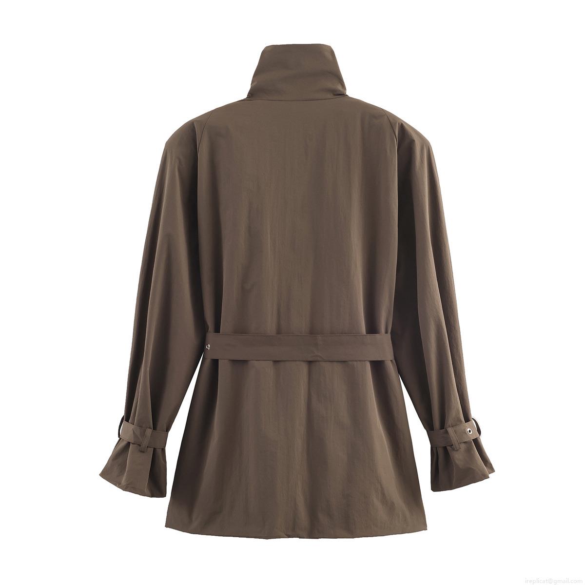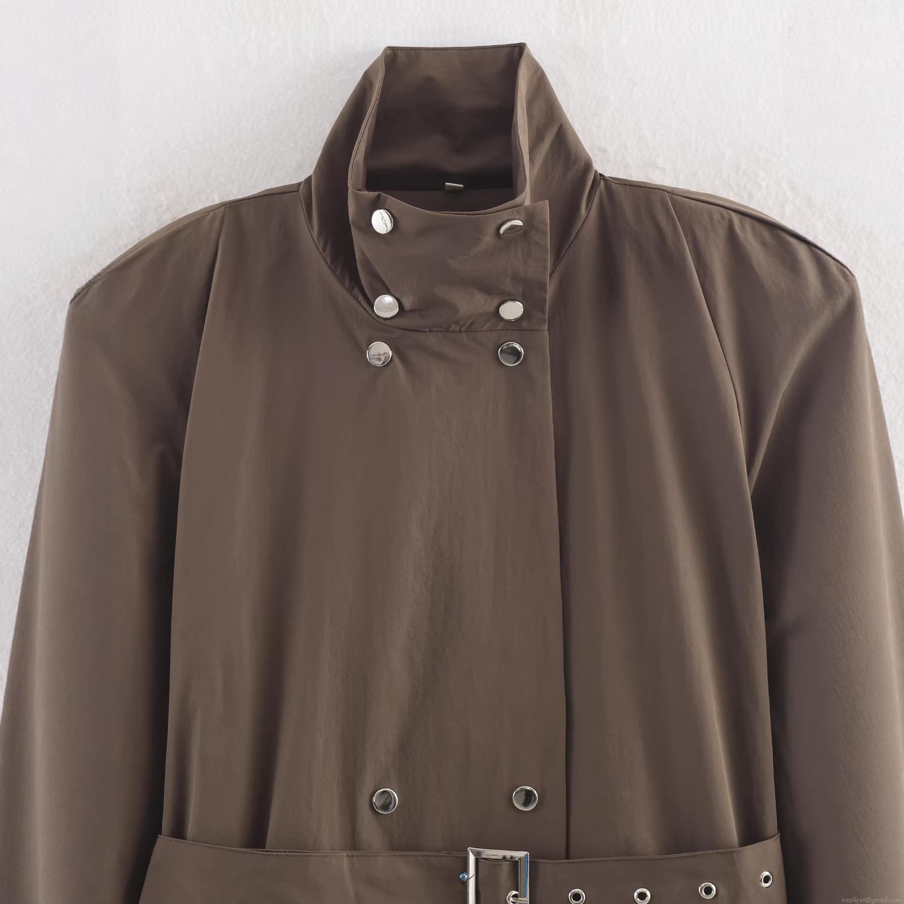 • Women's Casual Solid Color Trench Coat With Belt Stand Collar Loose Fit Mid-Length Windbreaker Jacket Streetwear Outerwear For Women Long Sleeve Polyester Coat With Metal Buttons