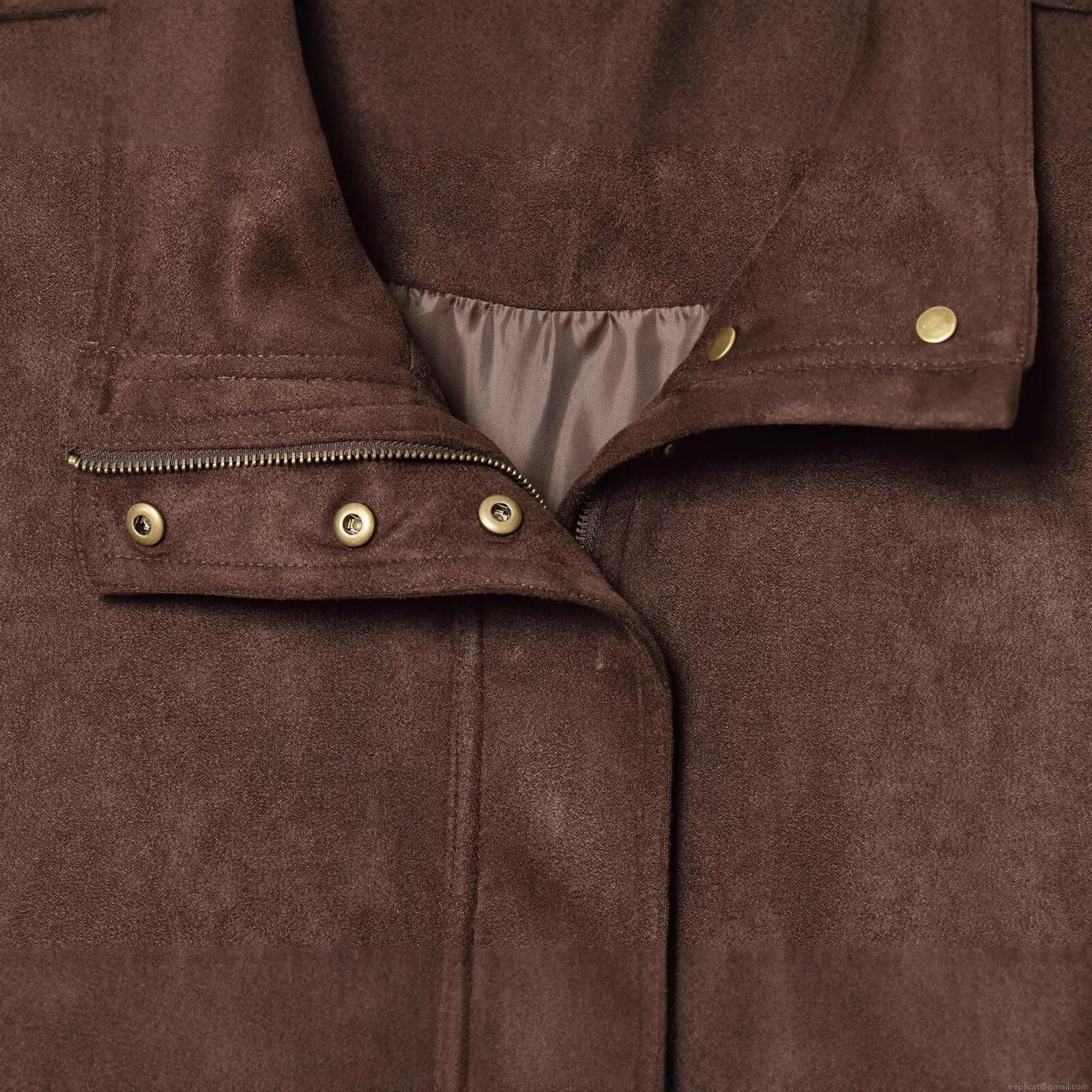 Women's Casual Suede Texture Jacket Streetwear Stand Collar Patchwork Long Sleeve Loose Fit Outerwear Metal Buttons Dark Brown Solid Color Autumn Coat