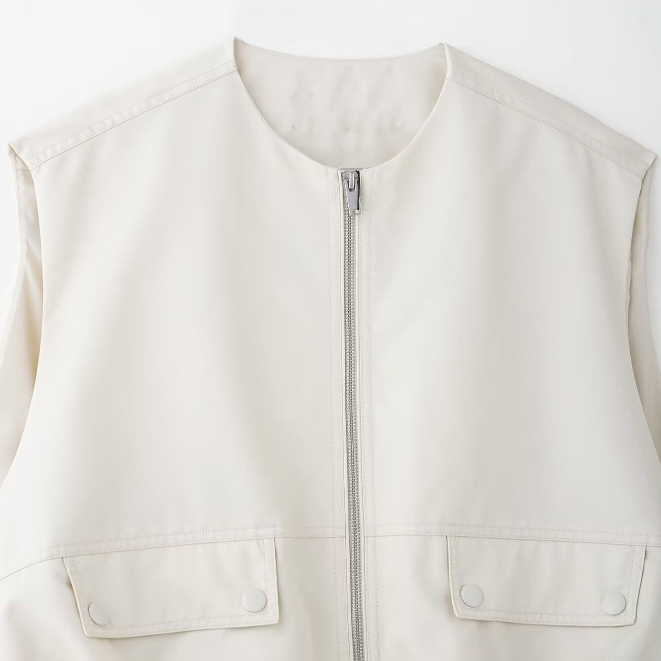 • Women's Casual Utility Vest Round Neck Zipper Pockets Loose Sleeveless Jacket 100% Polyester Solid Color Spring Summer Fashion Outerwear Women Daily Outdoor Wear