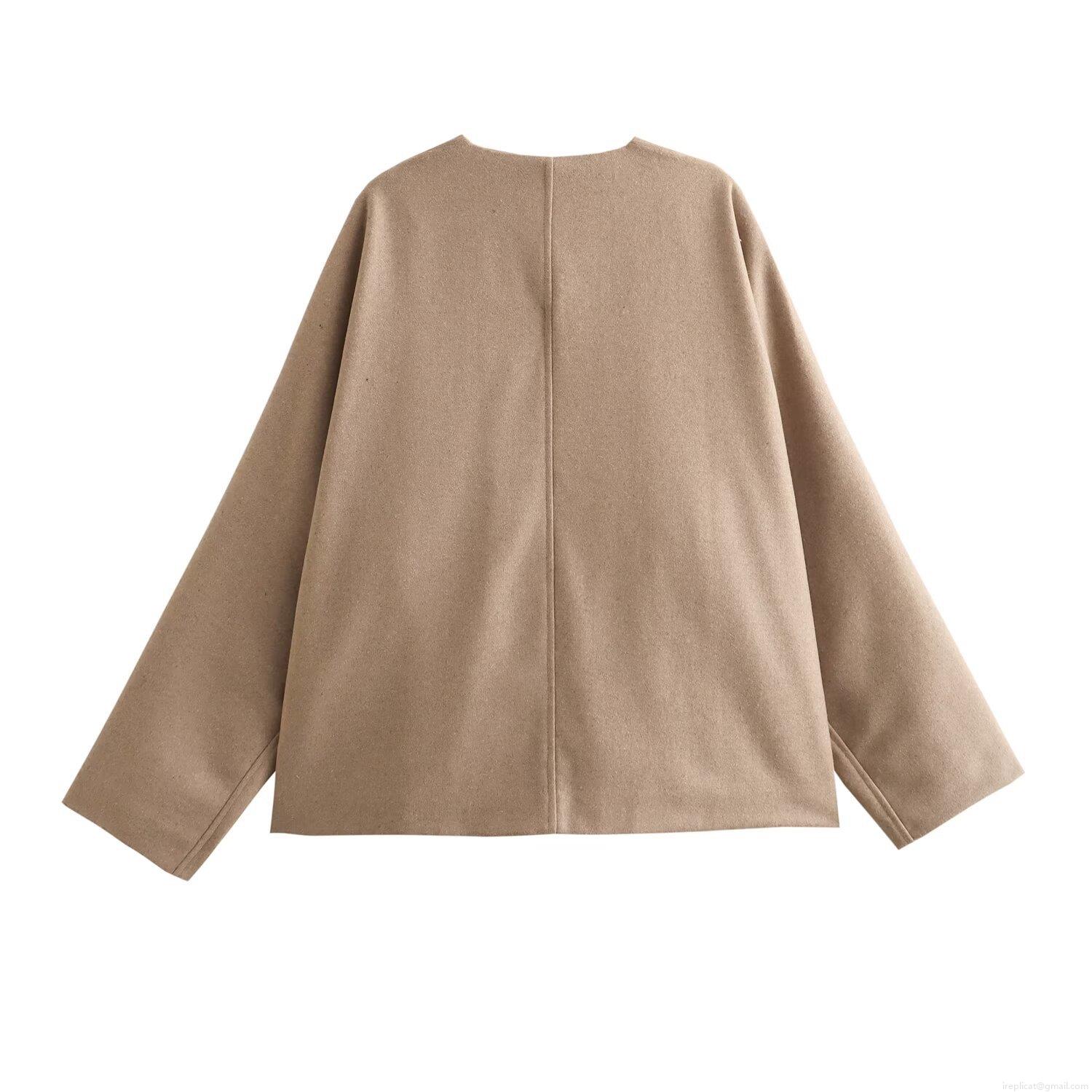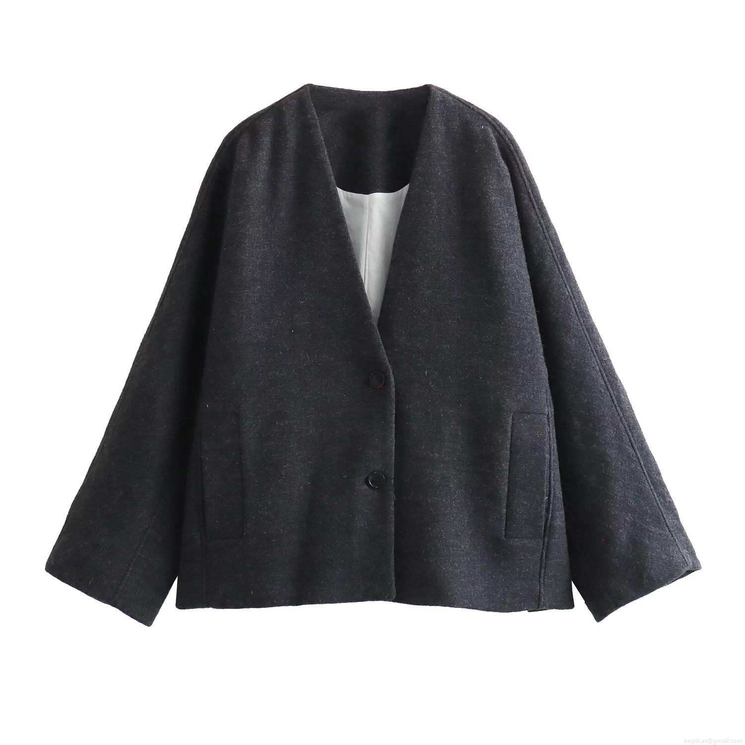 • Women's Casual V-Neck Loose Jacket Coat Single Breasted Two Buttons Polyester Blend Outerwear With Pockets Streetwear Fashion For Spring