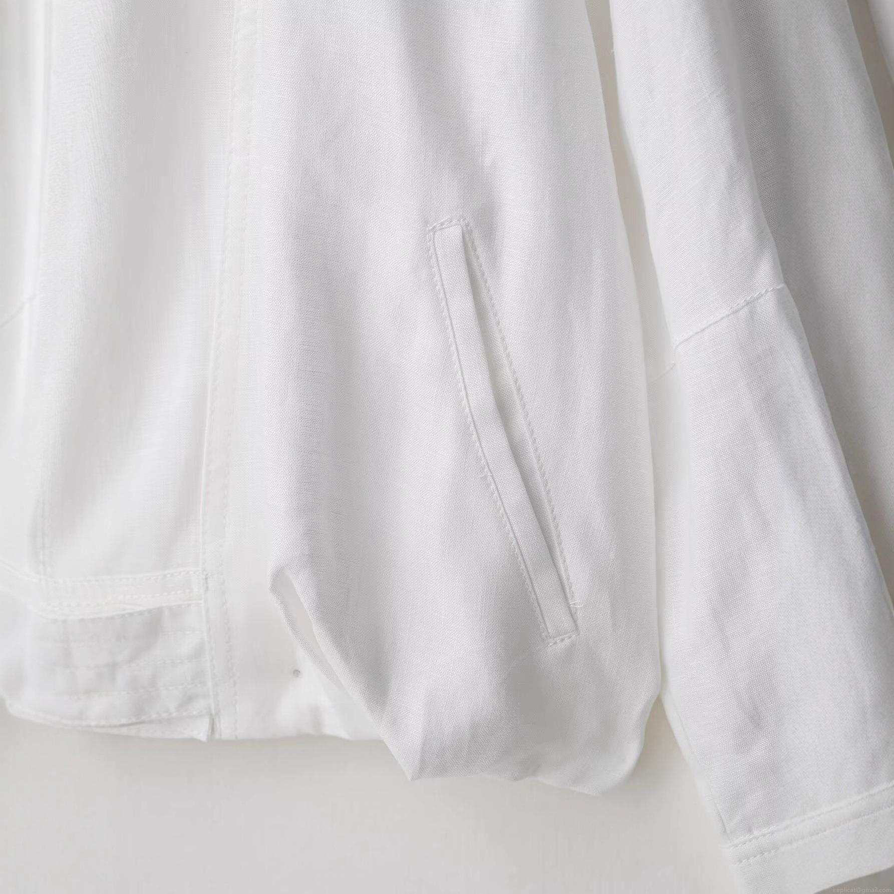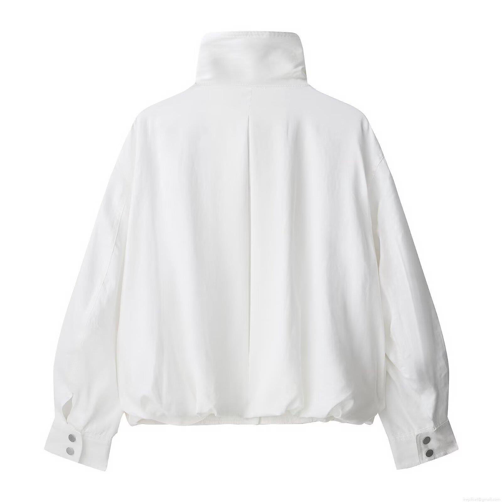 • Women's Casual White Bomber Jacket Stand Collar Long Sleeve Polyester Blend Outerwear Streetwear Zip Up Coat With Snap Buttons For Autumn Spring Daily Wear