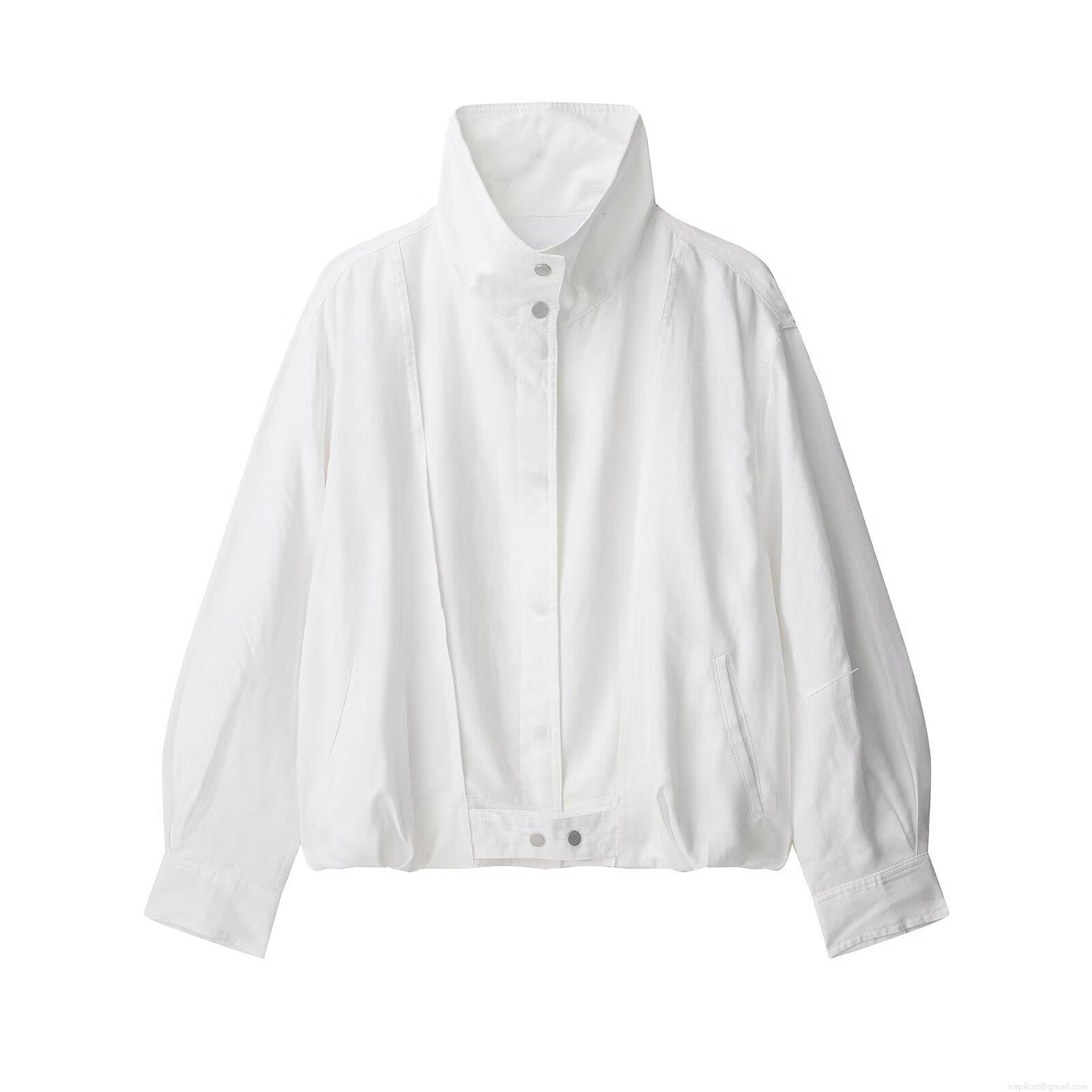 Solid Color, Metal Snap, Stand-up Collar, Finishing Design