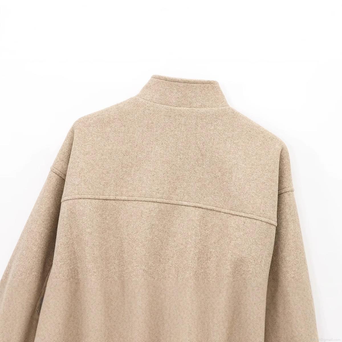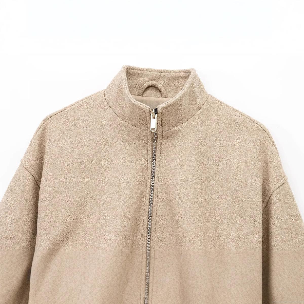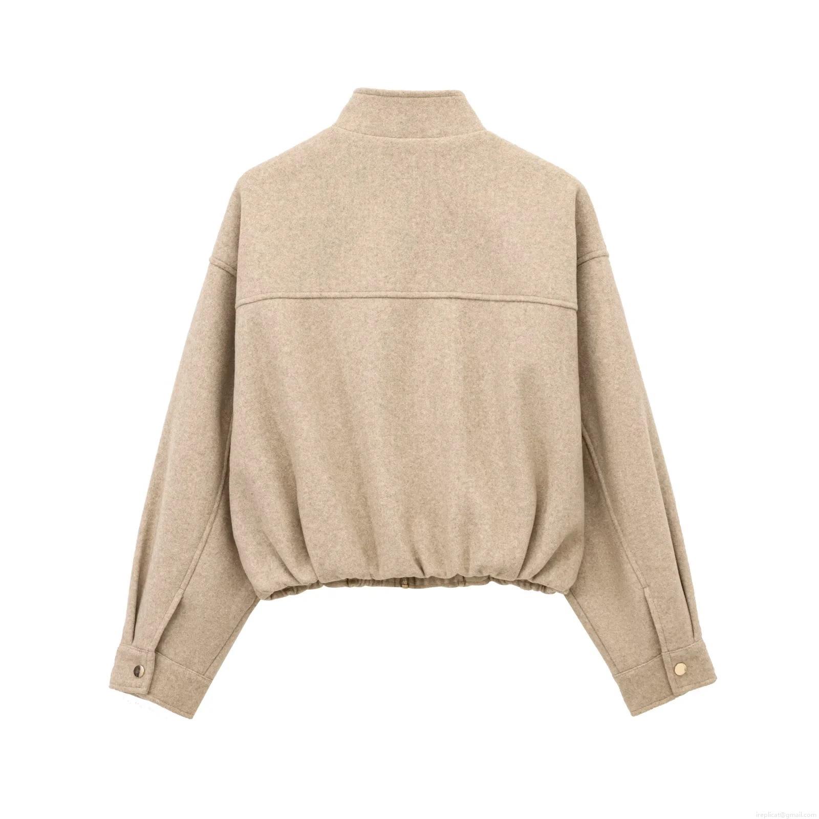 • Women's Casual Wool Blend Bomber Jacket Loose Fit Stand Collar Zip Up Short Coat Oatmeal Beige Outwear Warm Streetwear Fashion Coat for Women