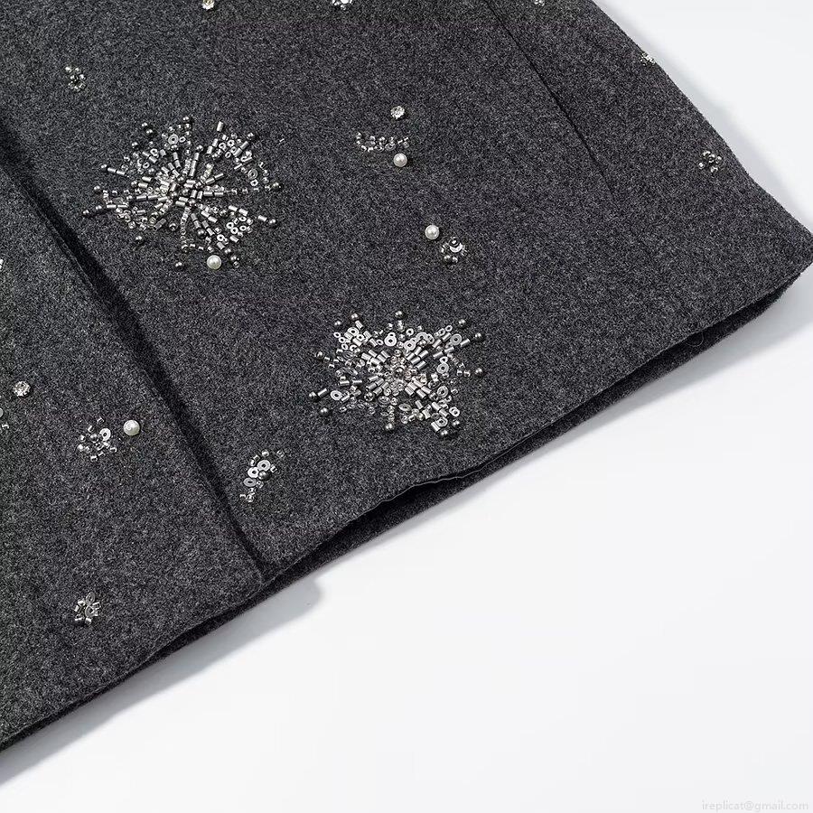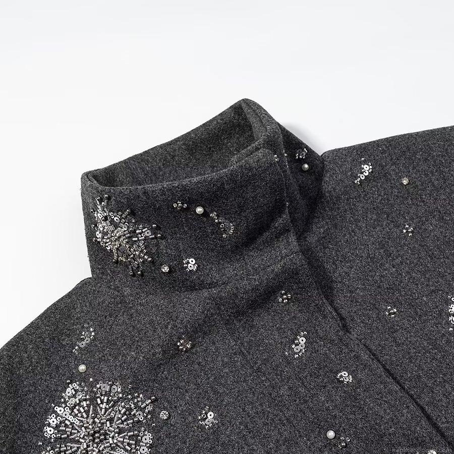 • Women's Casual Woolen Jacket Coat With Snowflake Sequin Rhinestone Embroidery Stand Collar Loose Fit Winter Warm Elegant Short Jacket For Women