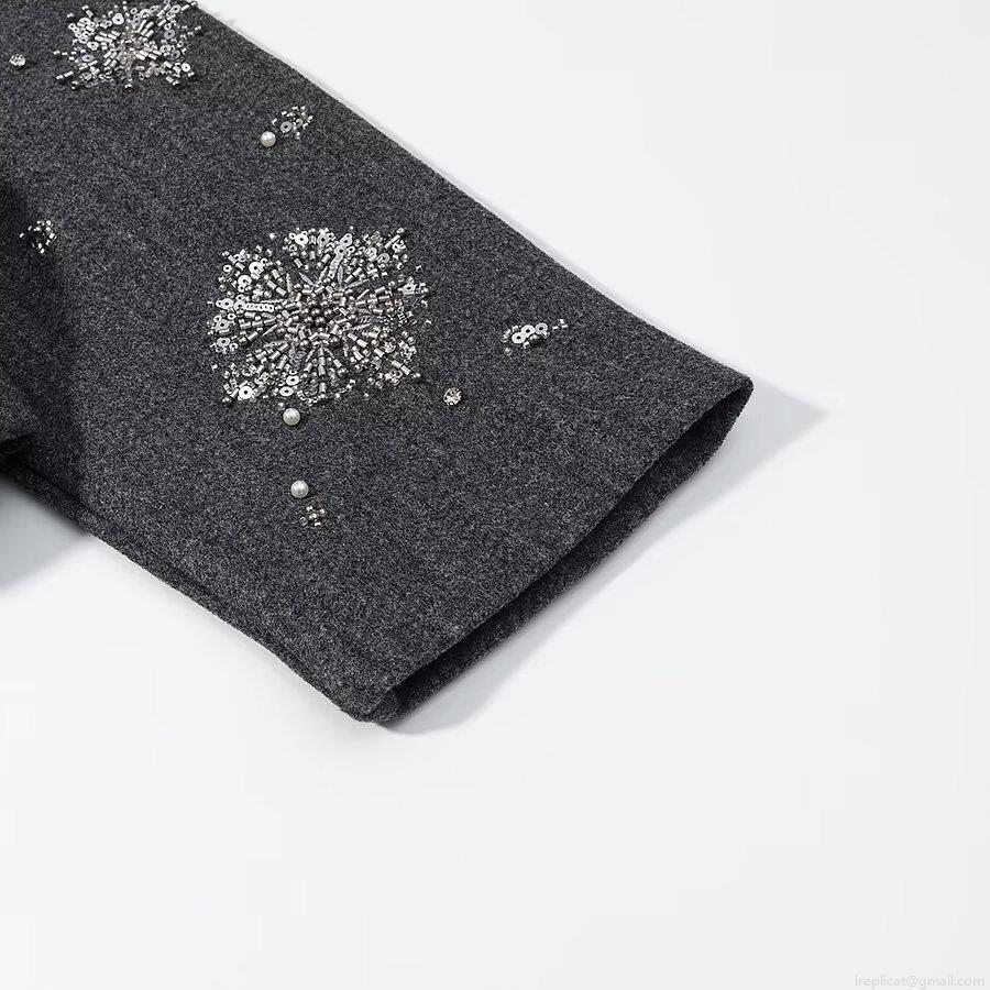 Rhinestone, Sequin, Pocket, Pearl, Snowflake, Beading, Stand-up Collar