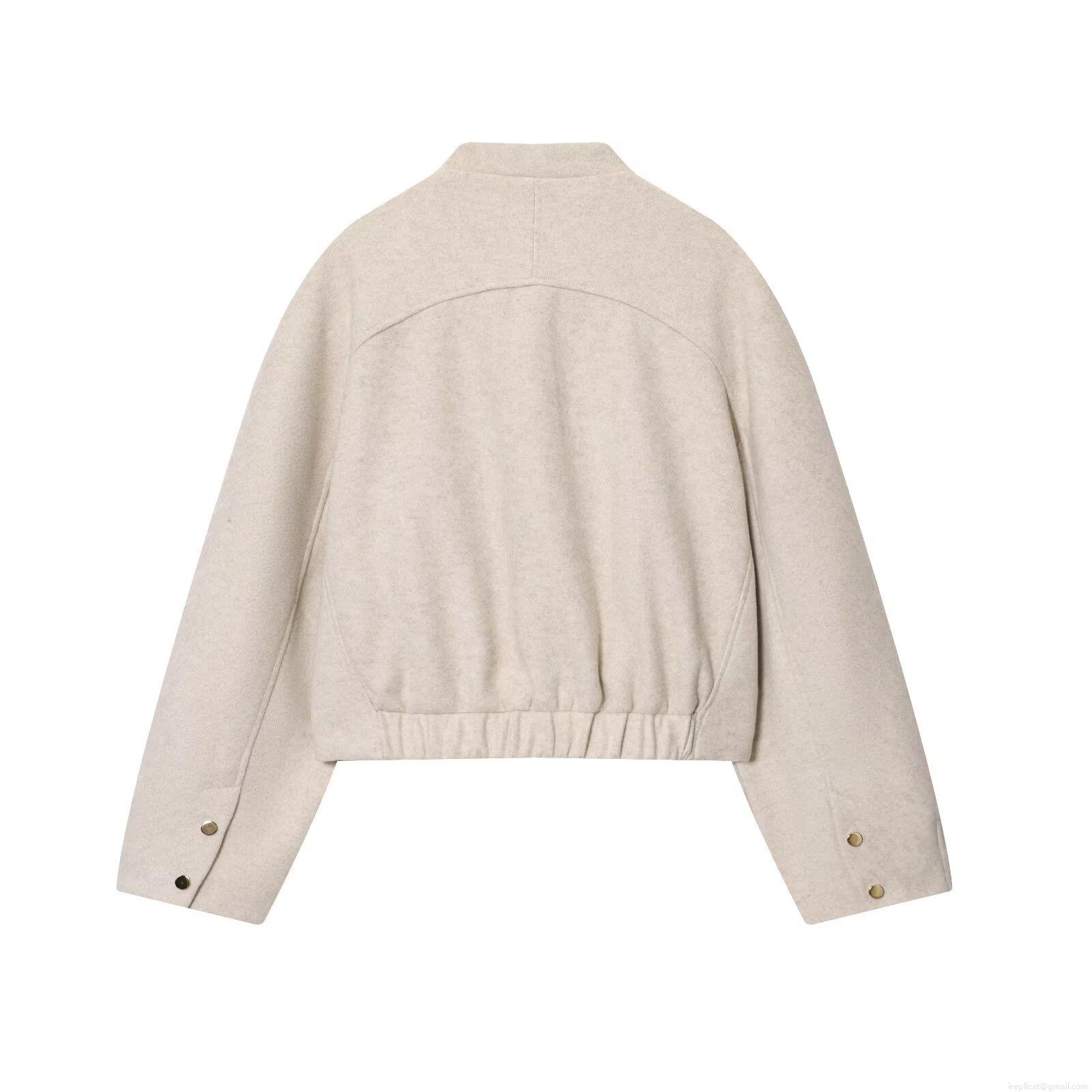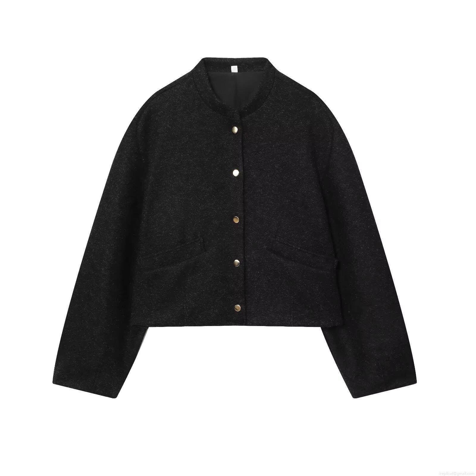 • Women's Casual Woolen Texture Short Jacket Loose Fit Bomber Jacket With Gold Metal Buttons Minimalist Solid Color Autumn Outwear For Streetwear