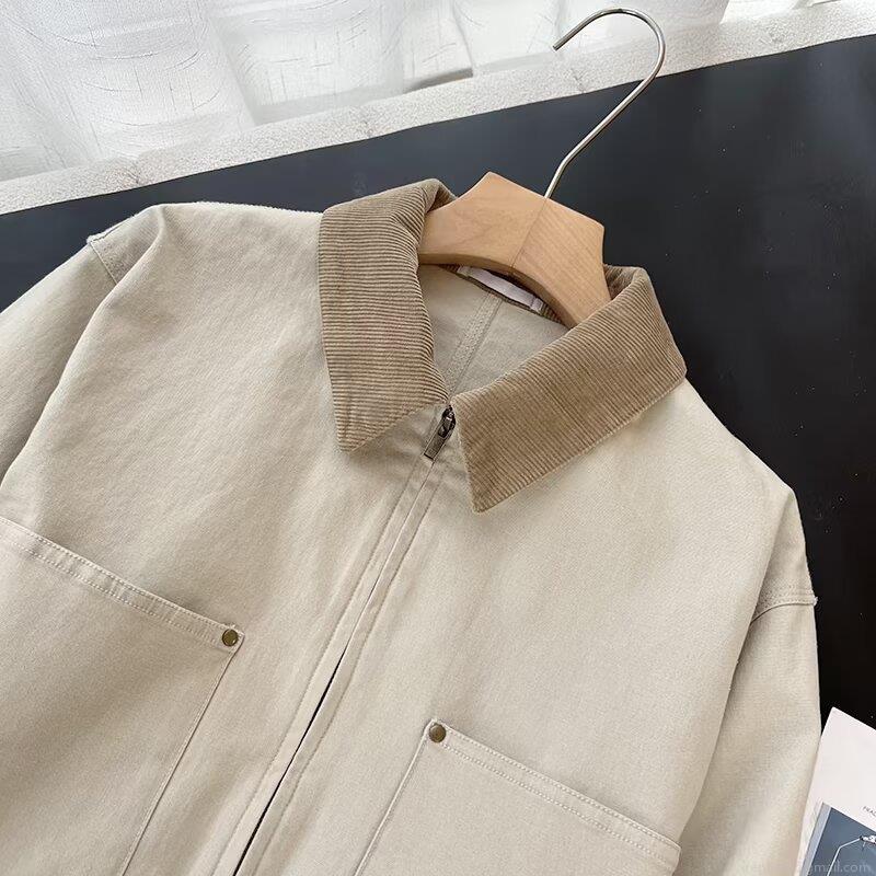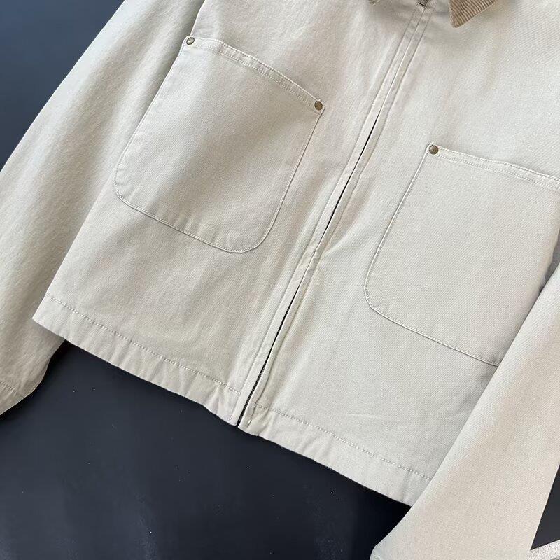 Solid Color, Metal Zipper, Rivet Reinforcement, Corduroy Patchwork, Large Patch, Color-blocked Collar