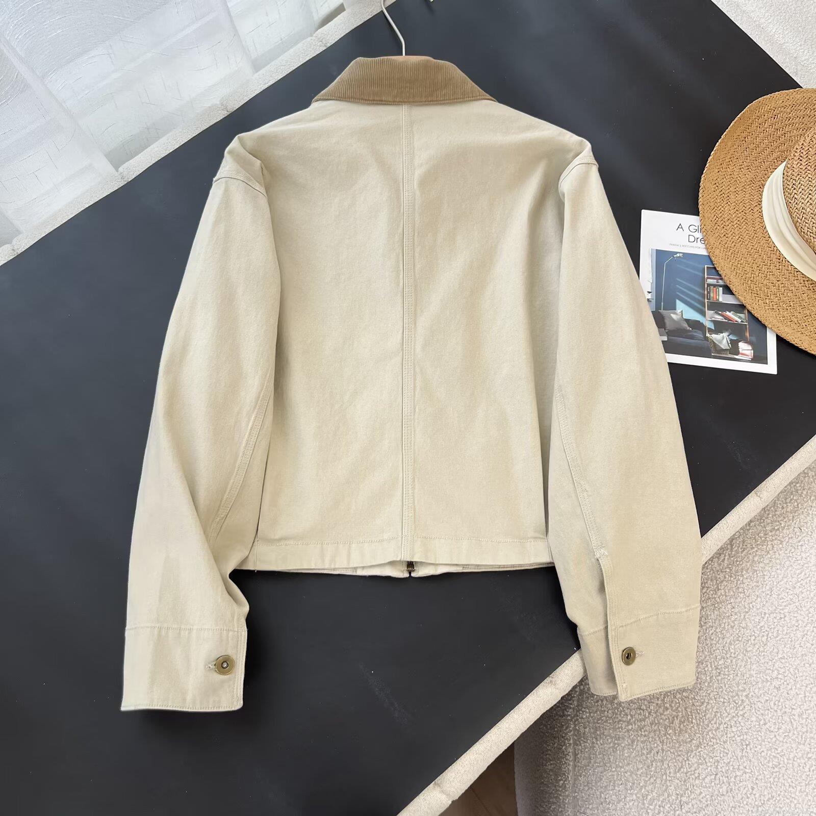 • Women's Casual Workwear Jacket With Corduroy Splice Collar Retro Polyester Canvas Zip Up Short Coat With Patch Pockets For Autumn Outdoor Travel