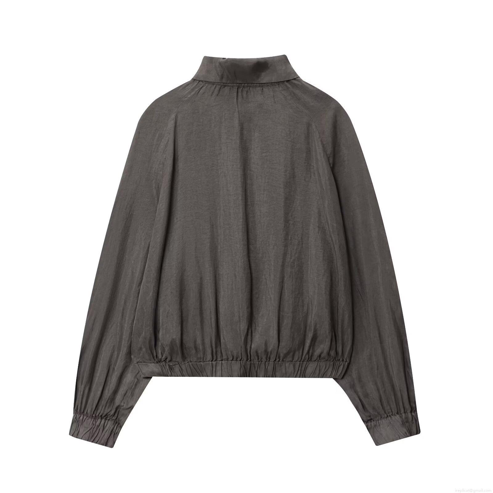 Women's Chic Bomber Jacket Cotton Polyamide Blend Zipper Stand Collar Drawstring Streetwear Flight Jacket Outerwear For Ladies