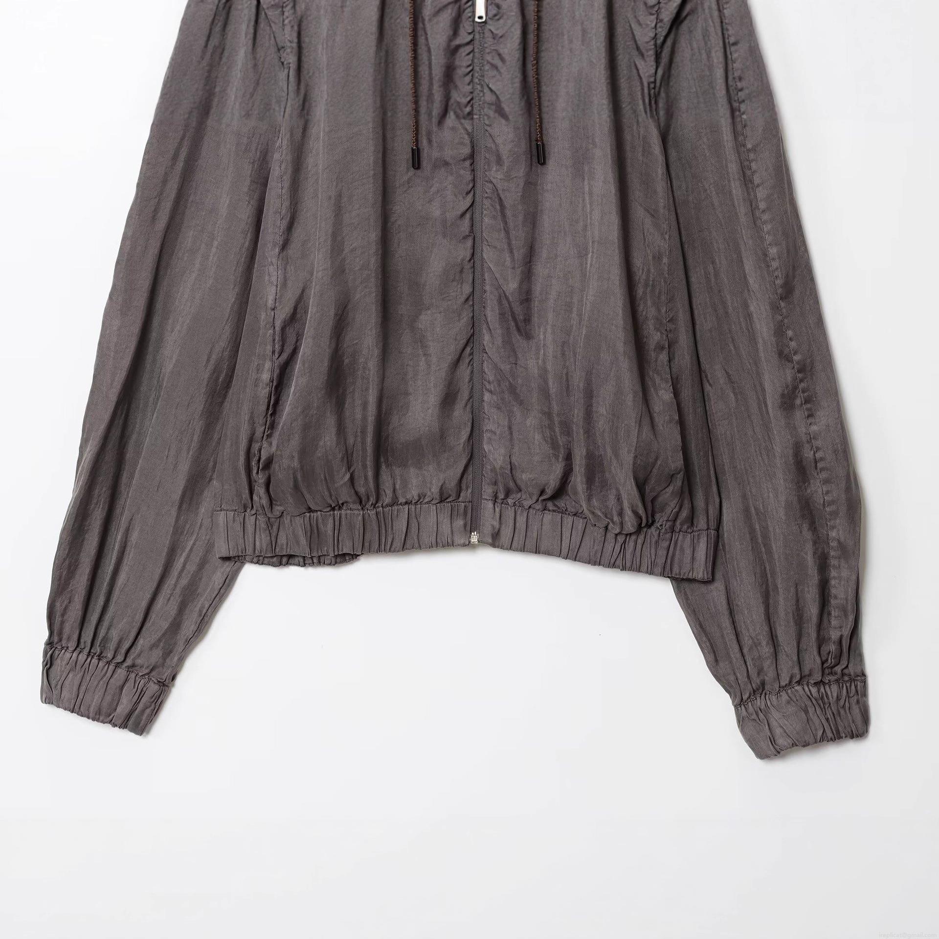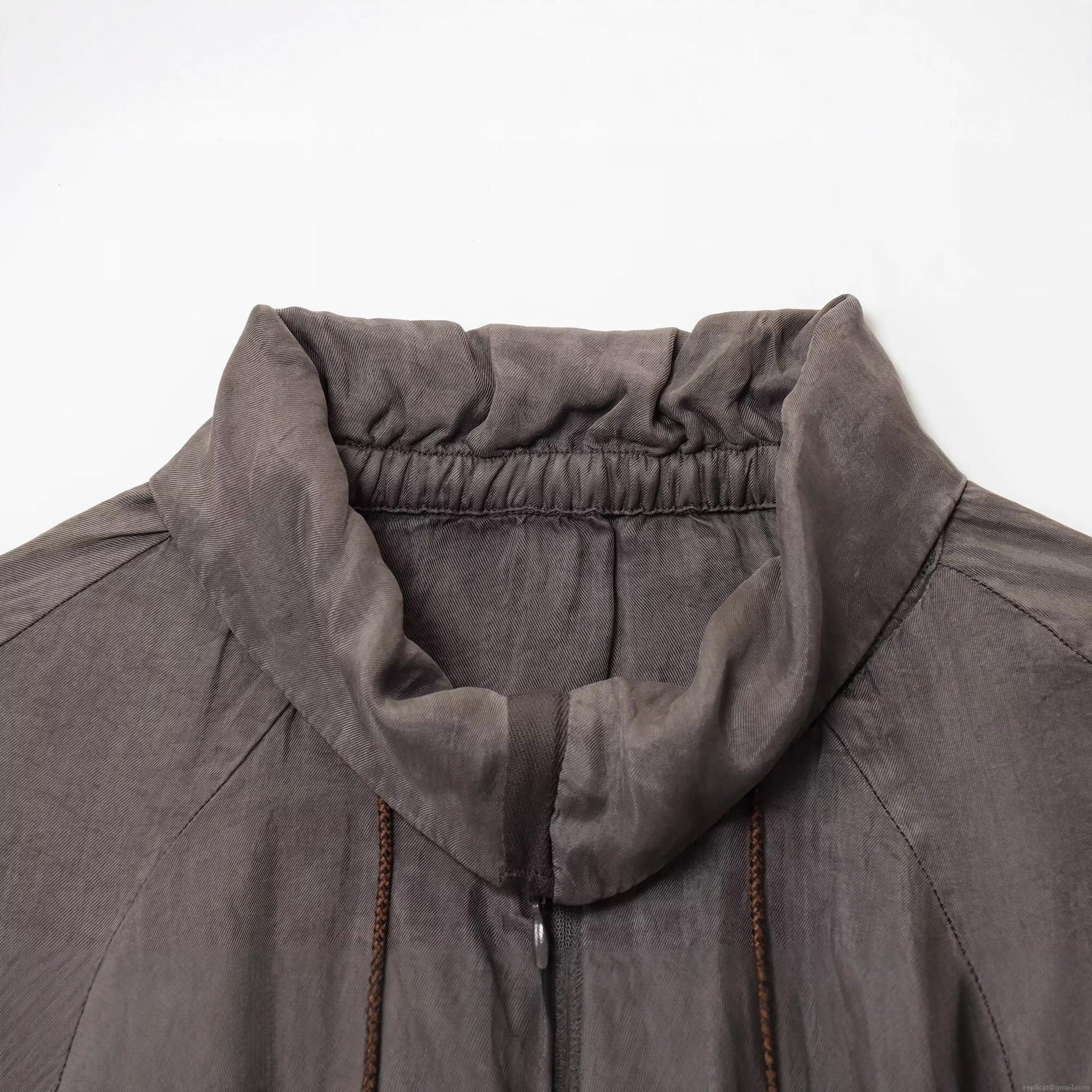 Solid Color, Zipper, Drawstring, Stand-up Collar, Wrinkled Texture, Elastic Drawstring