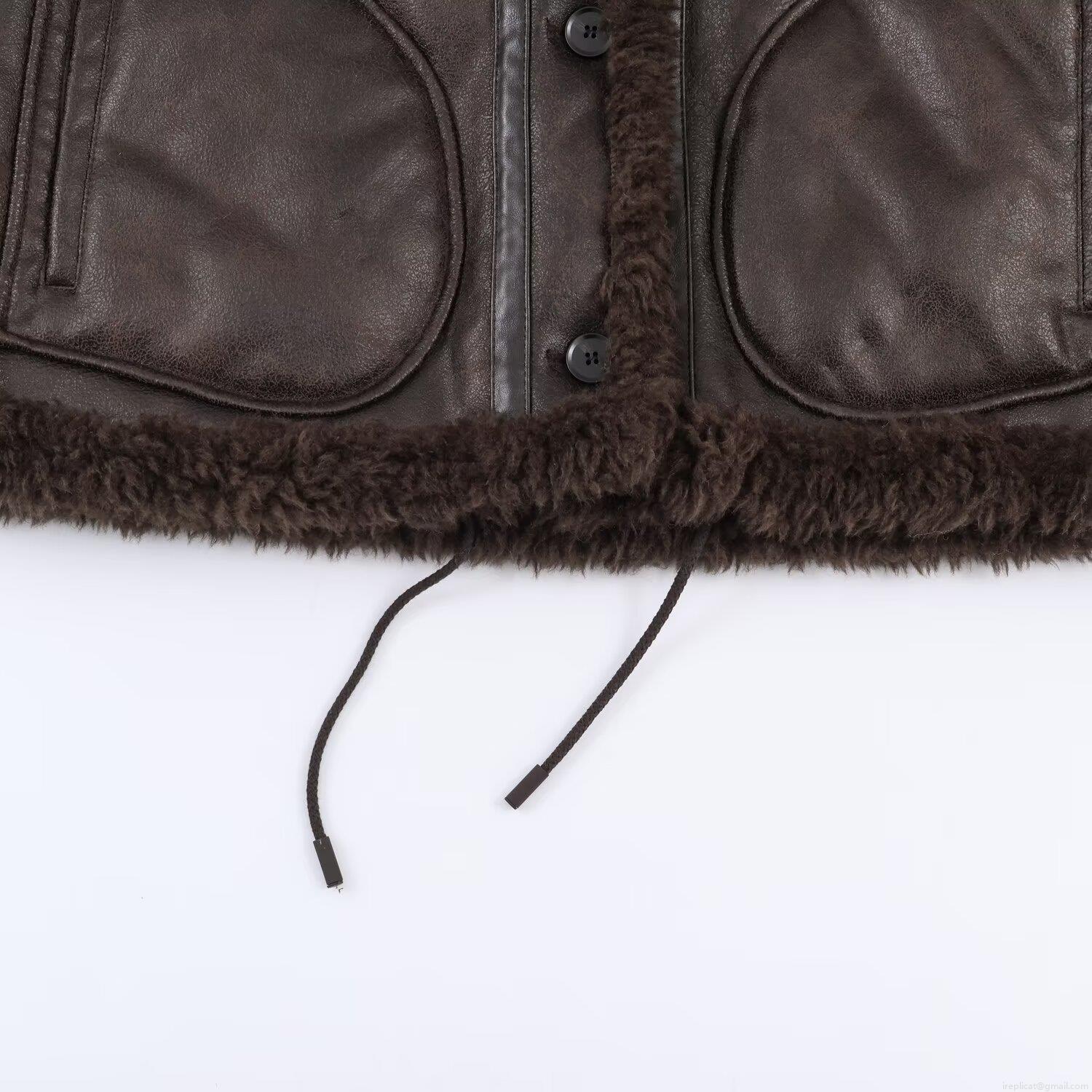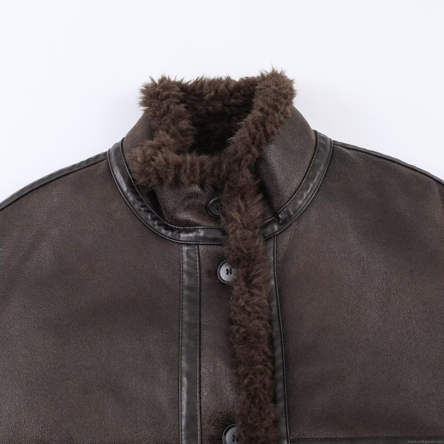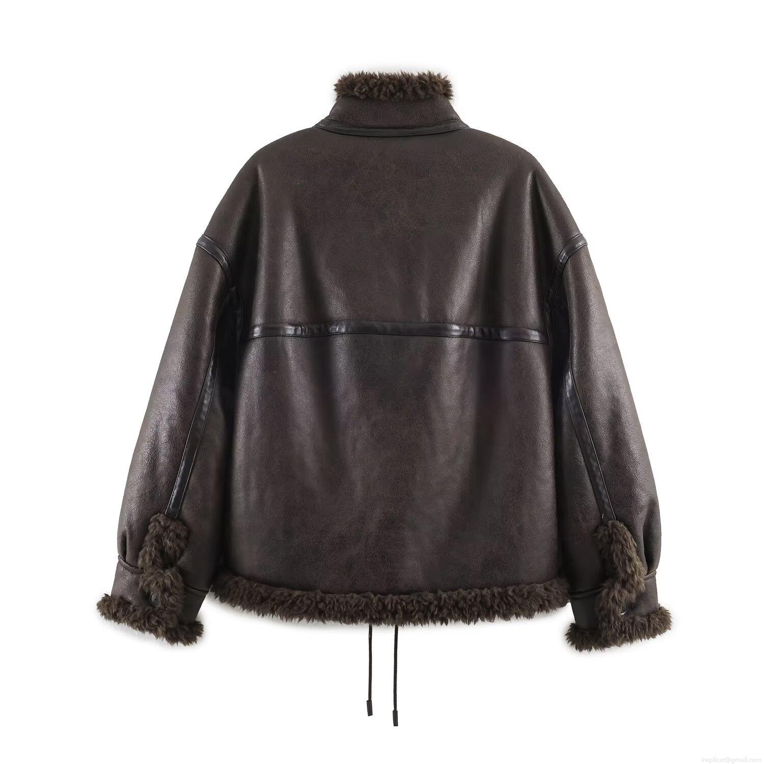 • Women's Chic Faux Fur PU Leather Jacket Standing Collar Long Sleeve Thick Warm Shearling Coat For Autumn Winter Streetwear Daily Wear