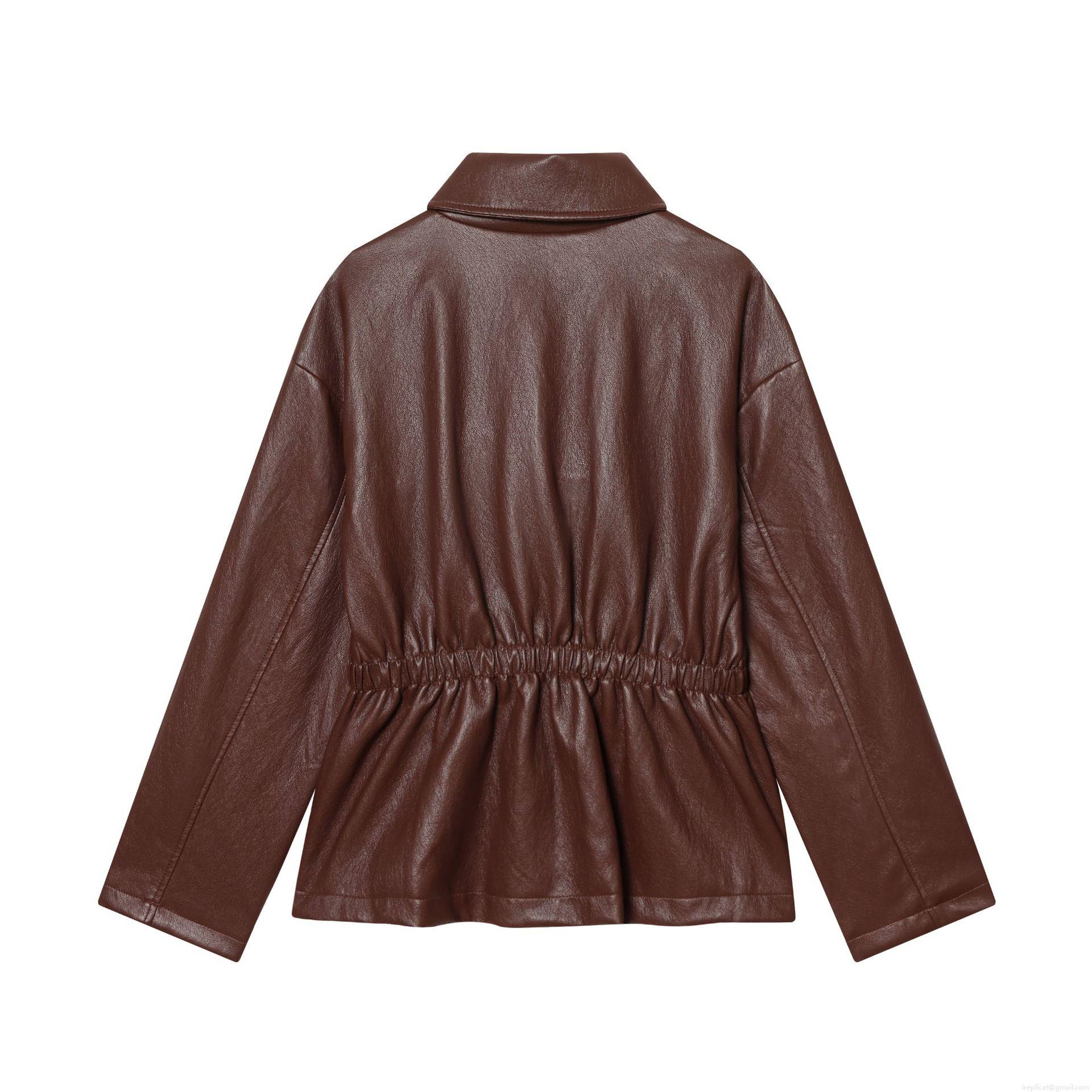 • Women's Chic Faux PU Leather Jacket Turn-Down Collar Slim Fit Biker Coat With Waist Folds Zipper Short Outerwear For Women Elegant Casual Streetwear Top