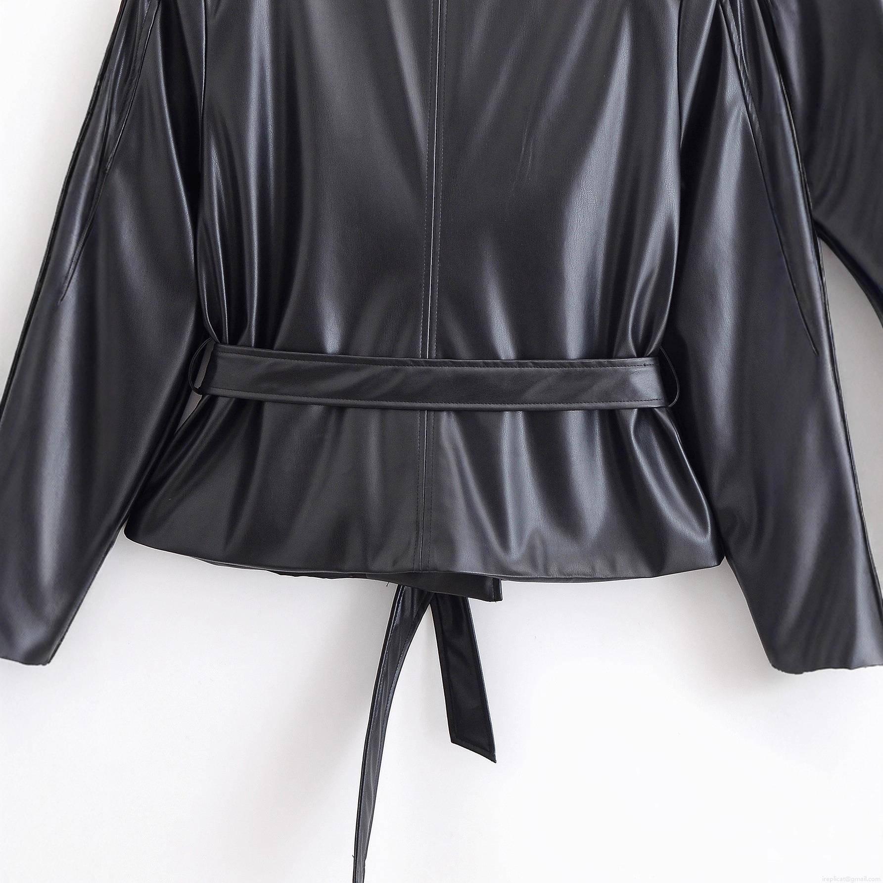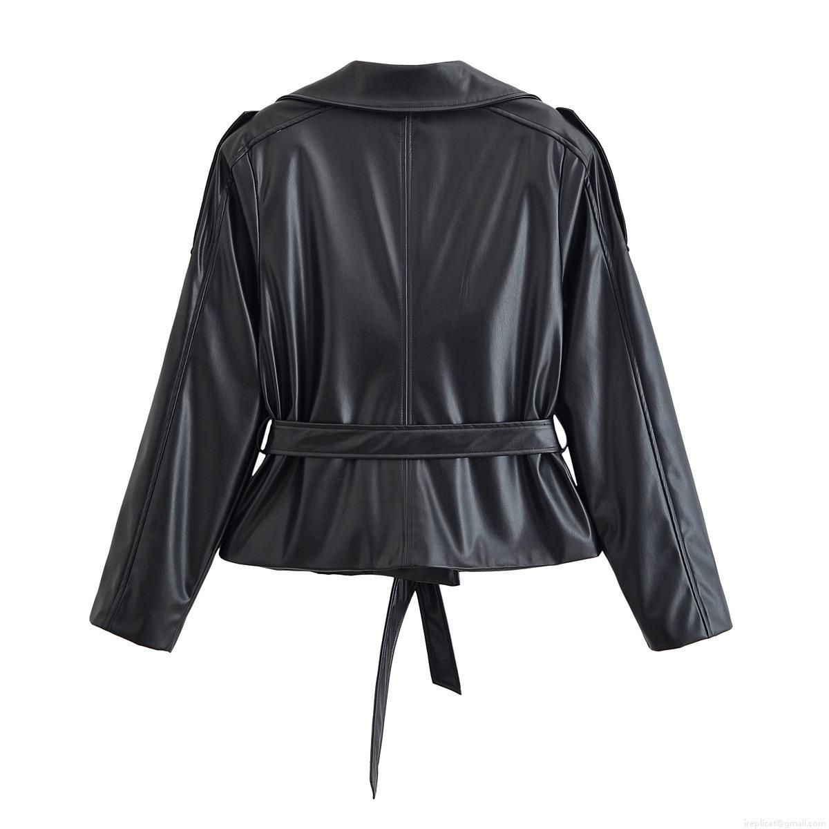 Women's Chic PU Leather Short Trench Coat Jacket With Belt Lapel Long Sleeve Single Breasted Streetwear Outerwear Autumn Winter
