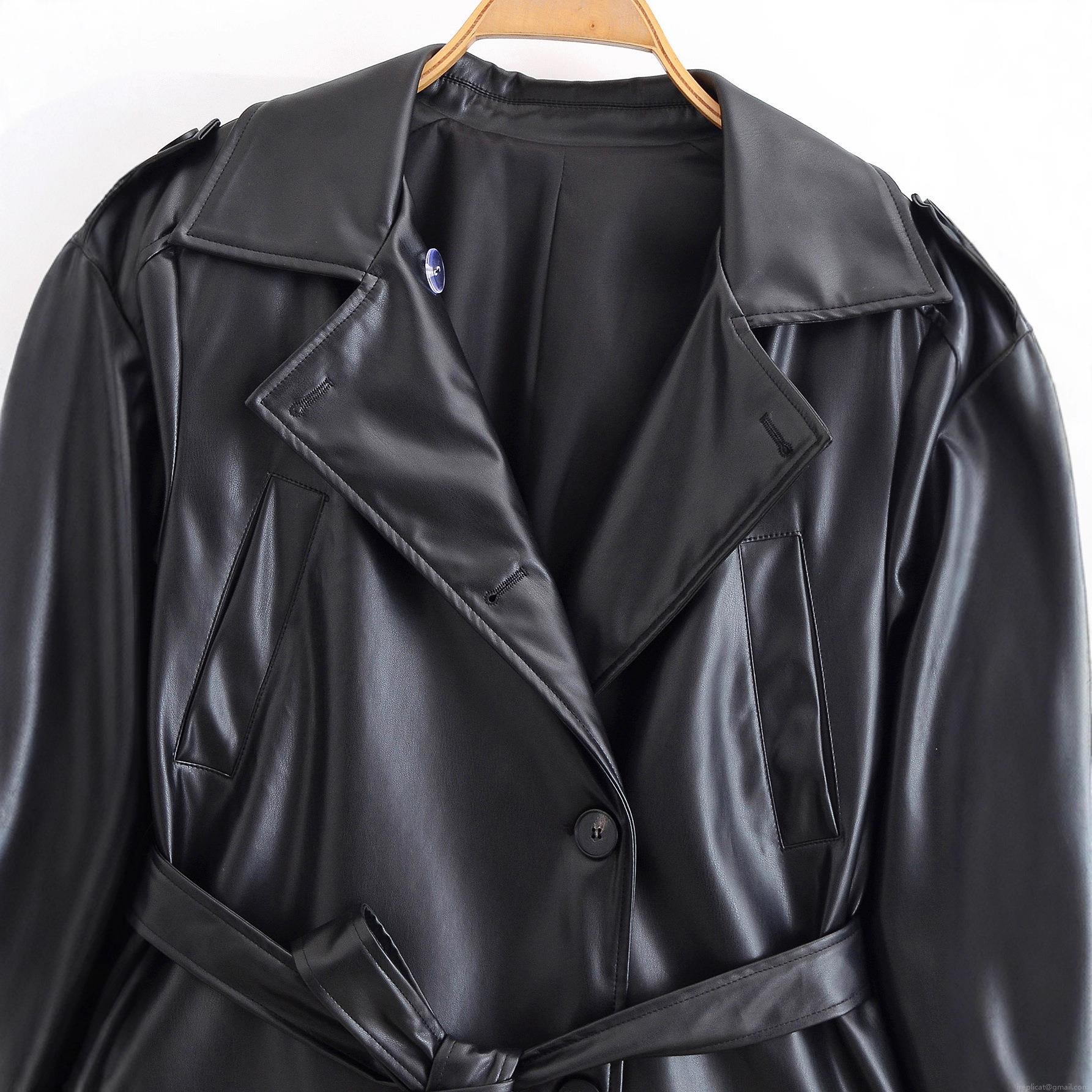 • Women's Chic PU Leather Short Trench Coat Jacket With Belt Lapel Long Sleeve Single Breasted Streetwear Outerwear Autumn Winter