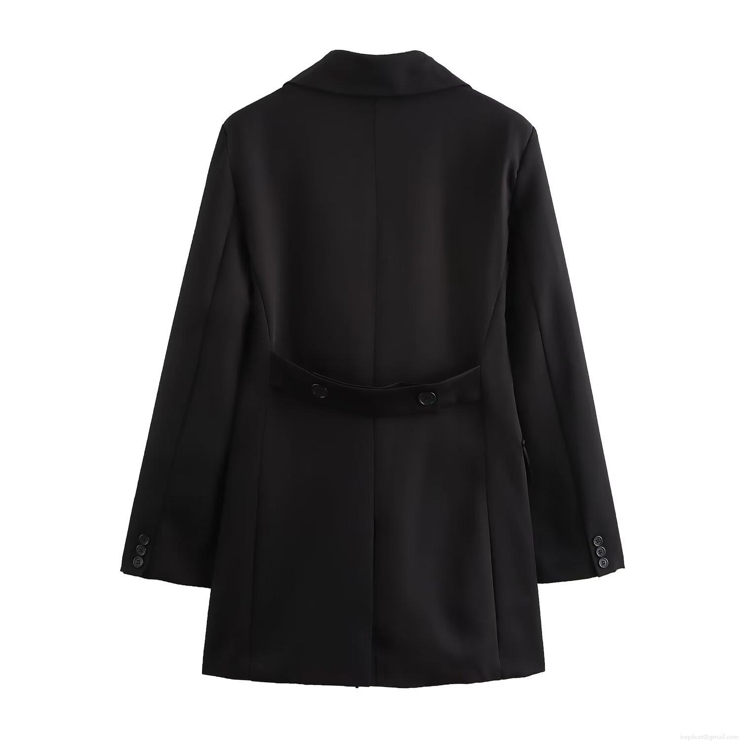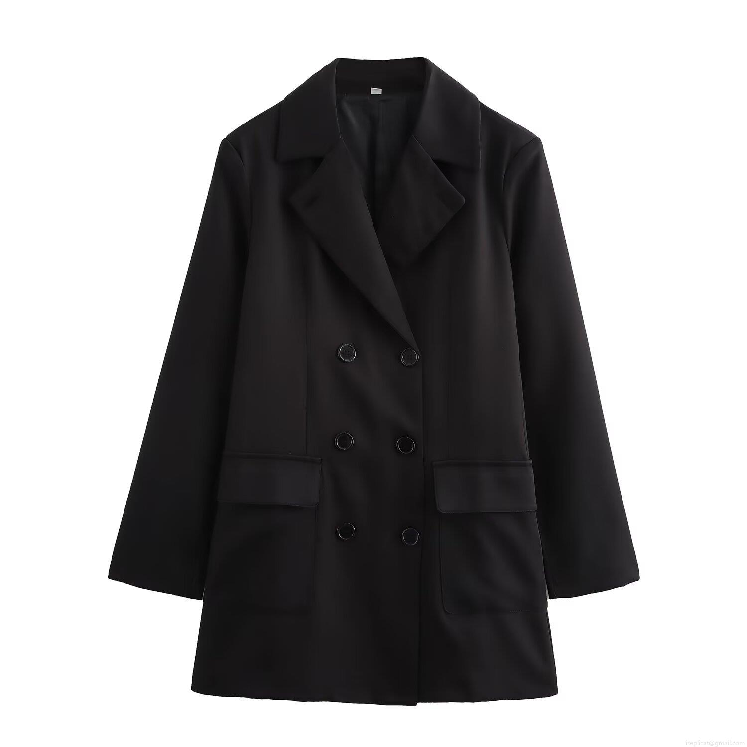 • Women's Classic Double Breasted Long Sleeve Overcoat Notch Lapel Mid-Length Blazer Jacket Solid Color Casual Polyester Outerwear Tops