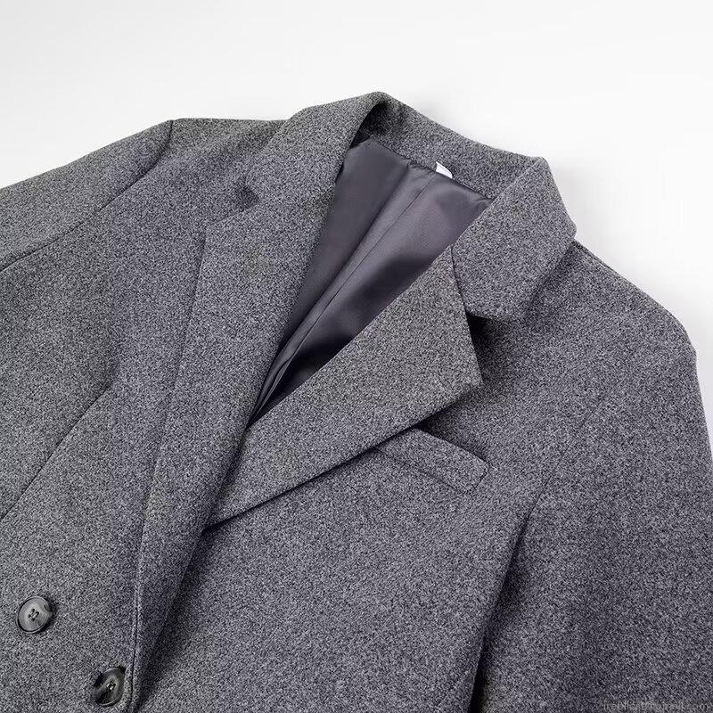 • Women's Classic Double Breasted Long Woolen Coat Elegant Notch Lapel Loose Fit Solid Grey Polyester Overcoat Casual Streetwear For Autumn Winter