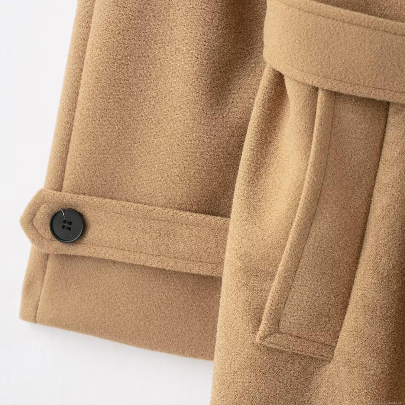• Women's Classic Double Breasted Woolen Trench Coat Elegant Long Polyester Spandex Blend Overcoat With Belt British Style Winter Jackets For Women
