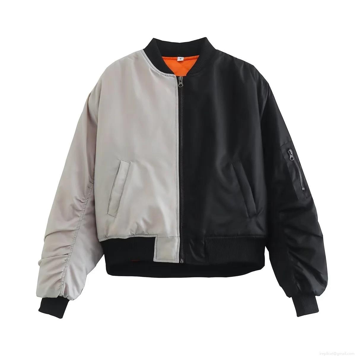 • Women's Contrast Color Block Bomber Jacket Polyester Streetwear Flight Jacket Casual Zip Up Stand Collar Loose Fit Windproof Outerwear Autumn Fashion Patchwork Coat