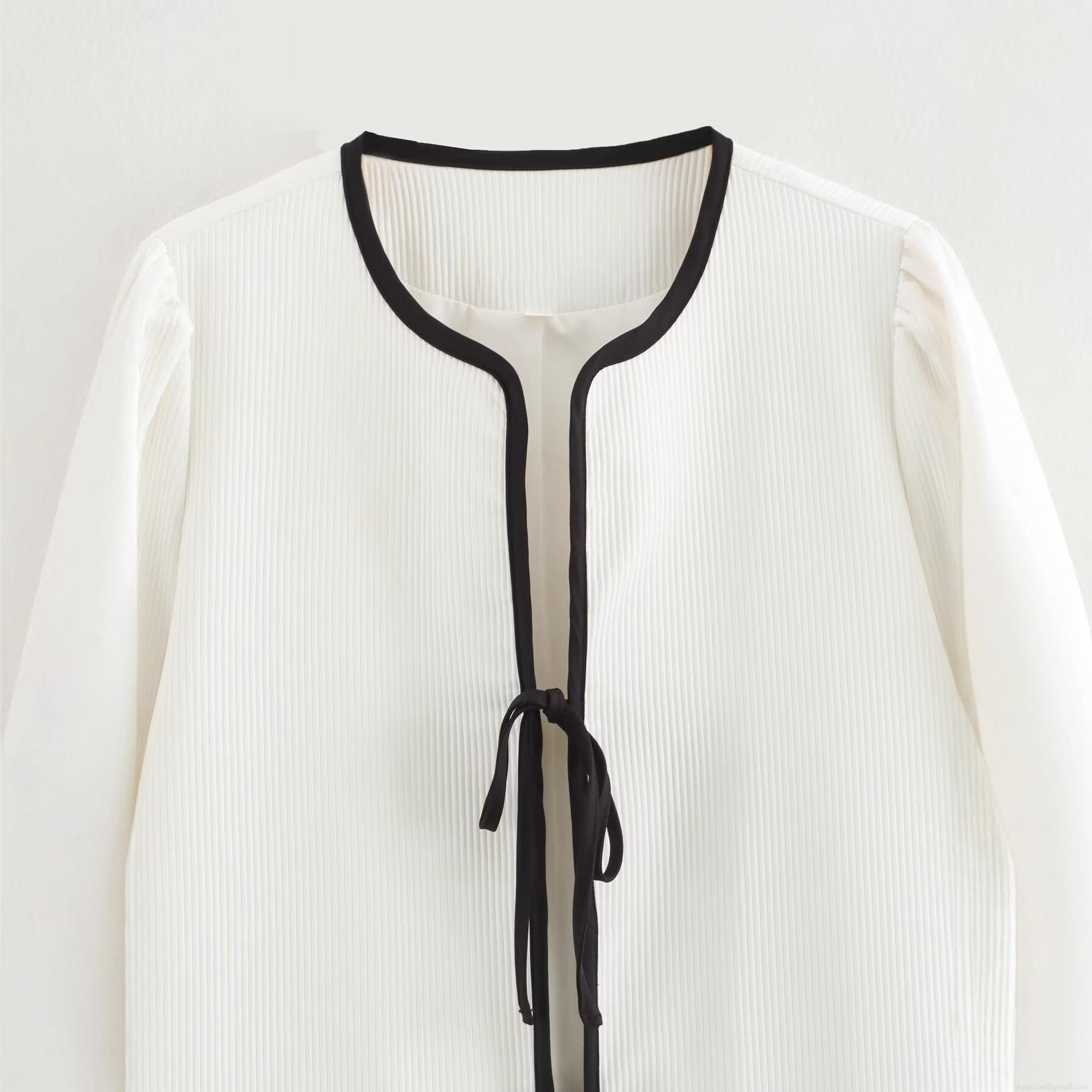 • Women's Contrast Trim Ribbed Cardigan Jacket Lace-up Front Long Sleeve Top With Pockets Casual Elegant Polyester Outerwear For Women Party Date Night