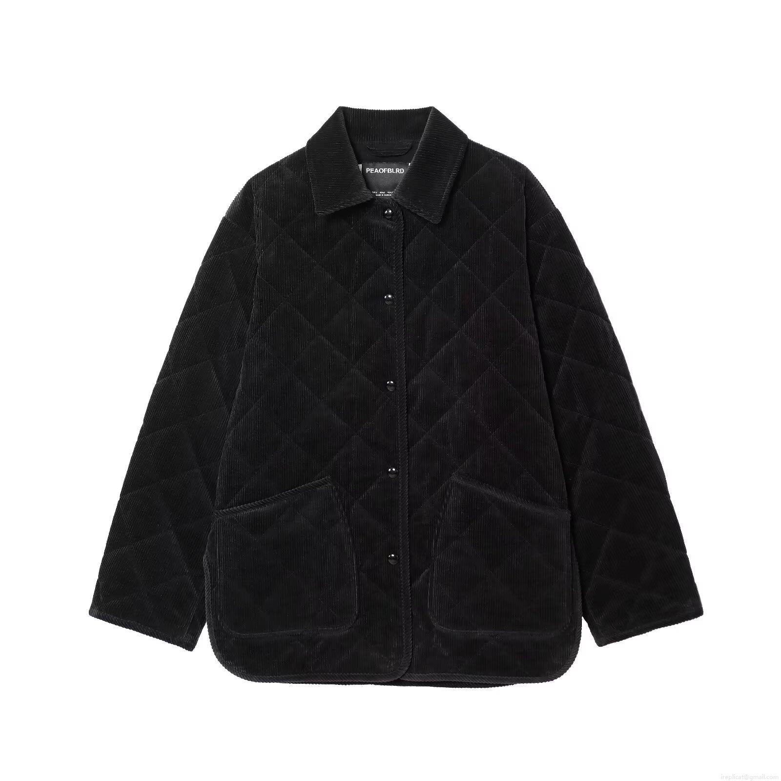 • Women's Corduroy Quilted Jacket Turn-Down Collar Single-Breasted Padded Coat Loose Fit Winter Warm Outwear With Pockets Fashion Casual Streetwear