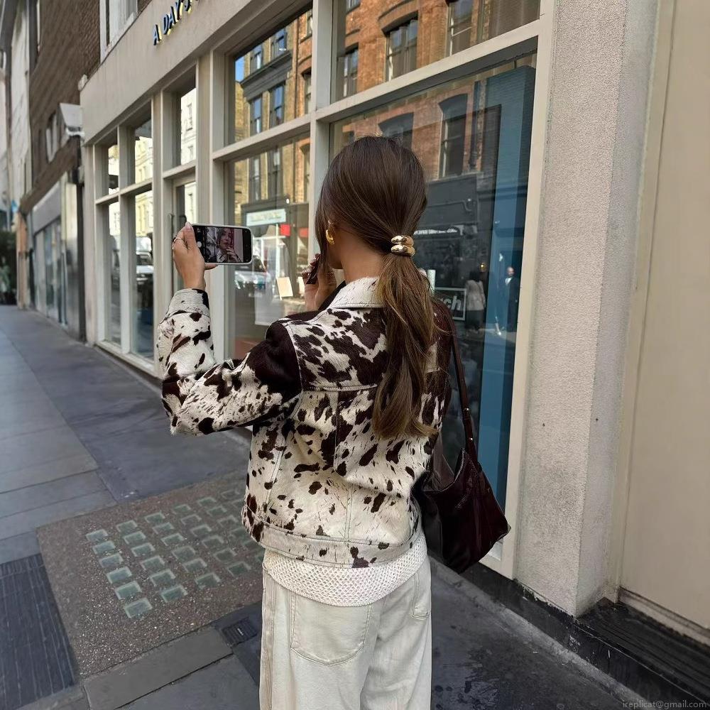 Pocket, Cow Print, Full Print, Metal Buttons, Flap Pocket